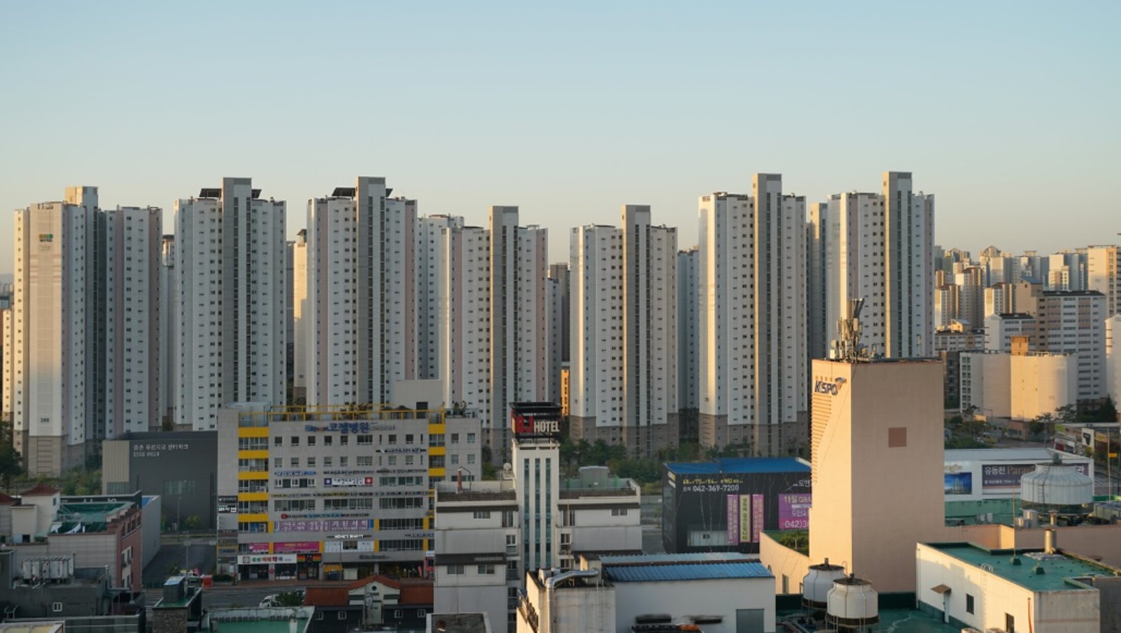 Derrière la silhouette hérissée d’un quartier de Hong Kong, Shanghai ou Séoul[1], il faut imaginer la vie de ces millions d’habitants qu’on juge « entassés », image déformée venue de nos échecs urbanistiques des grands ensembles et autres architectures d’habitat collectif. Pourtant, ces tours résidentielles élancées vers le ciel étonnent nos imaginations.[2] Plusieurs tours sont regroupées en complexes et sont nommées comme des marques commerciales (on lit souvent en anglais Park View, Sky Ville, voire les noms des conglomérats comme Lotte Castle Hyundai ou Daewo-Pruzio…) dont on retrouve les dénominations sur les arrêts de bus, ou sur des magazines édités pour les habitants[3], une lecture difficile pour ceux qui ne maîtrisent pas les langues locales.
