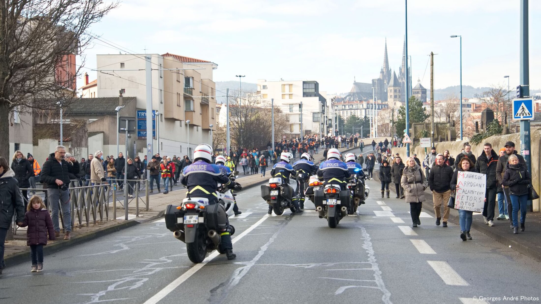 A Clermont, vous le verrez par les photos et surtout en vidéo, un interminable et magnifique cortège qui s'est scindé en deux ou trois afin que les organisations placées dans sa deuxième partie puissent rejoindre plus directement et plus vite la place de Jaude par des routes plus directes. Certain·es ont même renoncé à s'y rendre vu sa longueur qui a fatigué les nombreuses vieilles jambes dans le cortège.