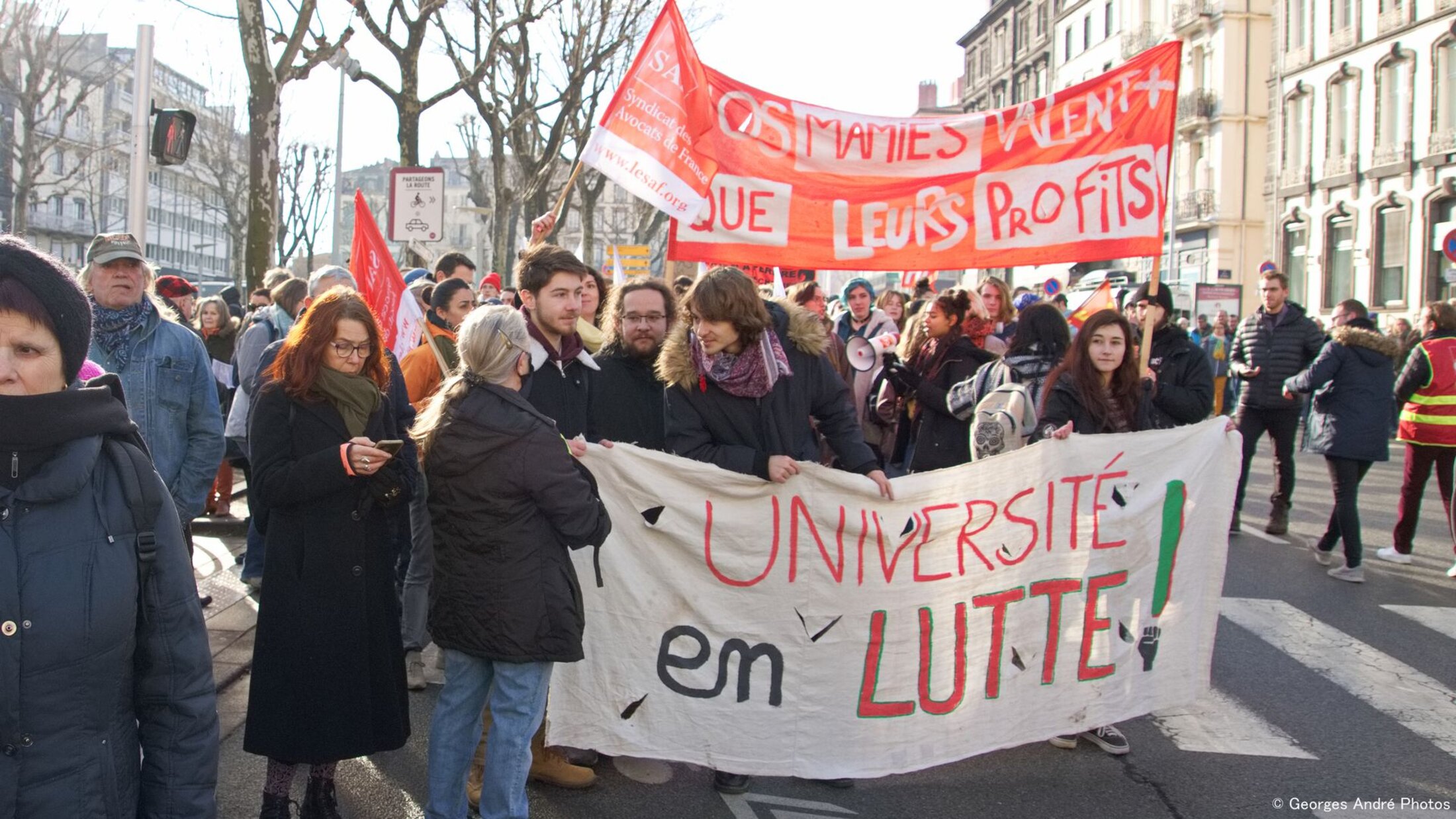Quelques centaines d'étudiant·es de la ville ont rejoint la manifestation place Delille manifestant enfin une vraie prise de conscience en action de la nuisance de ce projet qui les impacte directement : finir ses études à bac + 5 et ajouter 43 ans c'est souvent la retraite à 67 ans ! De quoi faire réfléchir et mobiliser. Chacun·e a peut-être envie d'avoir une période tranquille avant les ravages de la vieillesse et sa dépendance qui en résulte tôt ou tard. Macron veut voler deux ans de retraite dans sa période la plus valide (pour ceux et celles qui le reste après 60 ans) si ce n'est pas cinq ans de plus avec 67 ans pour avoir 43 de cotisation ou, à défaut une retraite à taux plein.