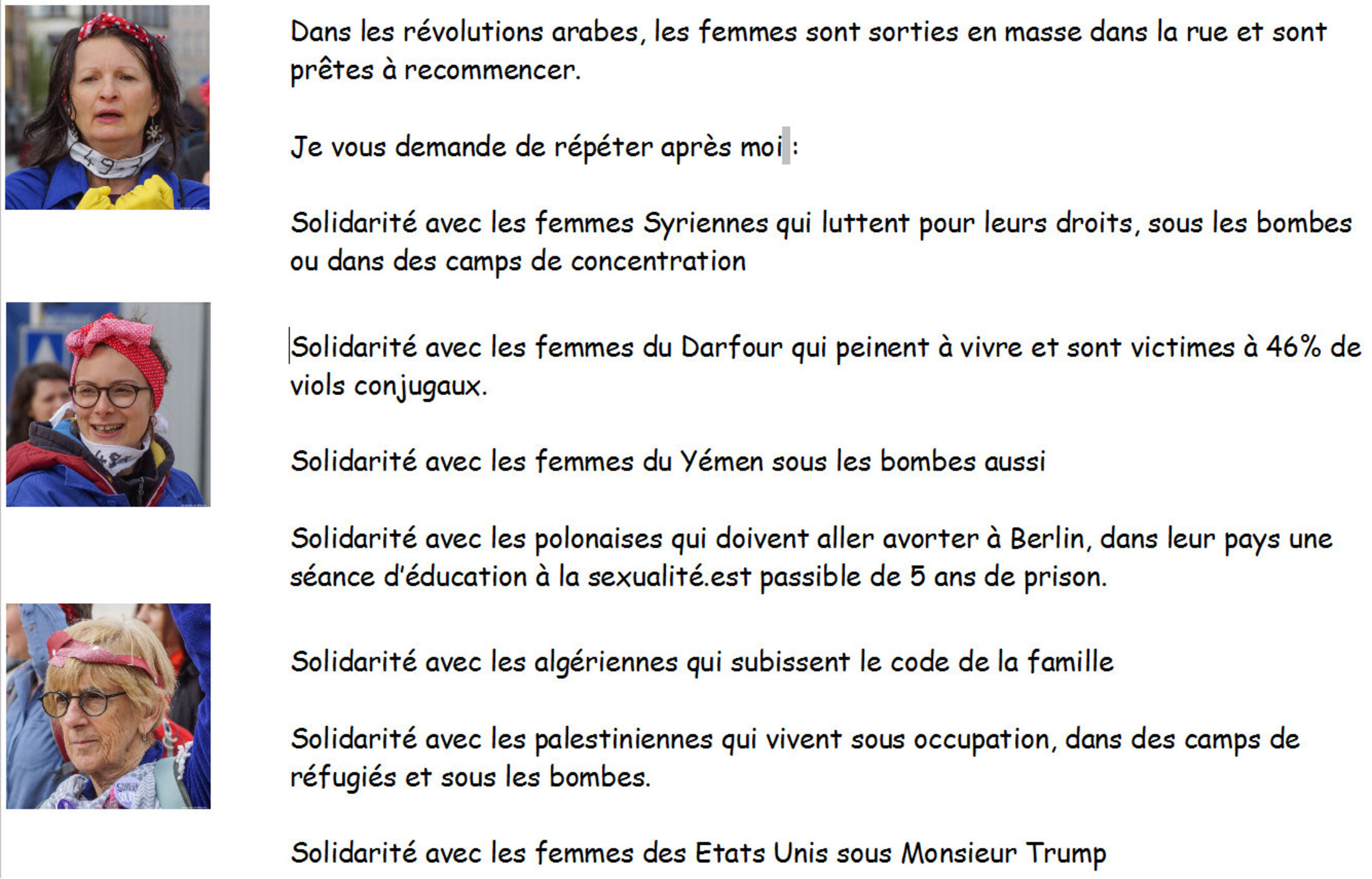 Ces chorégraphies, acte politique posé sans violence avec courage et force, non sans humour grinçant, font aussi beaucoup pour la cause des femmes. Leur force, à l'évidence, vient de cette solidarité qui les unit au-delà de ce qui peut les éloigner, comme dans tout groupe humain, mais aussi dans les liens qu'elles tissent autour d'elles et qui font chaud à leur rencontre, renouvelée fréquemment vu la fréquence des actions depuis trois mois. Cet hommage, c'est aussi ces visages en lutte, en joie, en action que j'ai voulu leur offrir modestement dans ce billet. Sont-elles assez fières de ce qu'elles donnent ?