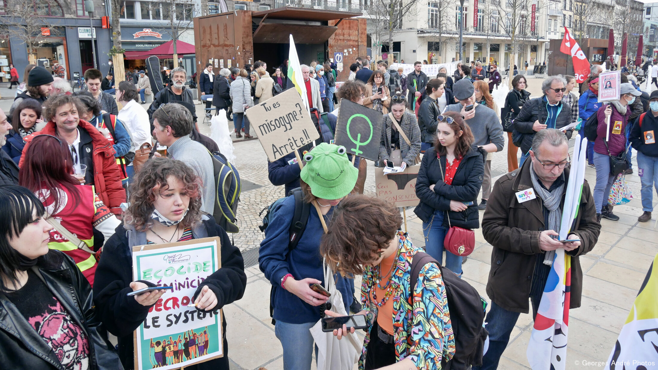 A Clermont-Ferrand, le collectif "8 mars toute l'année", organisateur, a mis les bouchées doubles et fortement mobilisé. Cette journée a connu une ampleur et une clameur des plus massive avec plus de mille manifestantes et manifestants mêlant slogans, chants, revendications, déclarations et danses avec la fougue des plus jeunes gonflées à bloc pour cette déferlante d'une égalité à construire tant les inégalités persistent d'année en année.