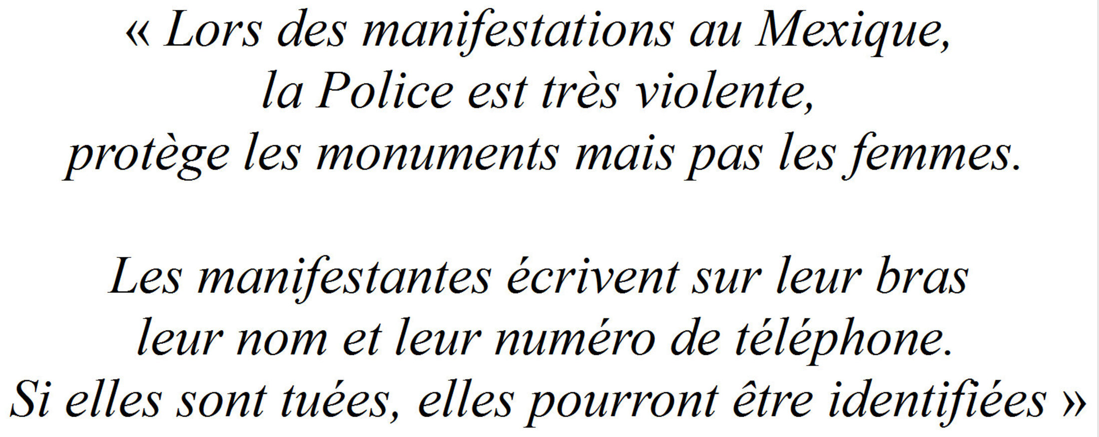 Parlant difficilement français et nous pas l'espagnol, elle nous a confié ces mots terribles qui disent la réalité tragique de la place des femmes dans d'autres régions du monde que nous ne pouvons ignorer ni oublier.