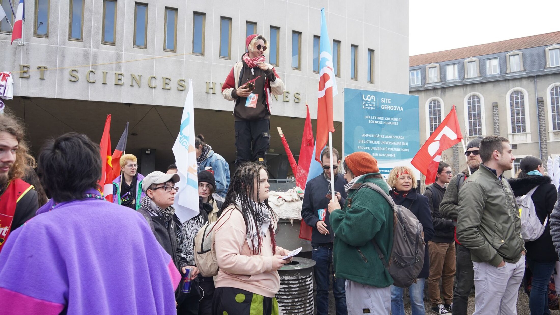 Après des jours de blocage devant la faculté de lettres et sciences humaines de Clermont-Ferrand (et par rotation devant d'autre sites) pour convaincre le plus d'étudiant·es possible de participer au mouvement contre la réforme des retraites, une manifestation étudiante et lycéenne avec un renfort important des organisations syndicales s'est déplacée sur un itinéraire inhabituel de cet établissement à la Préfecture profitant d'un beau temps contrastant avec la veille au soir.