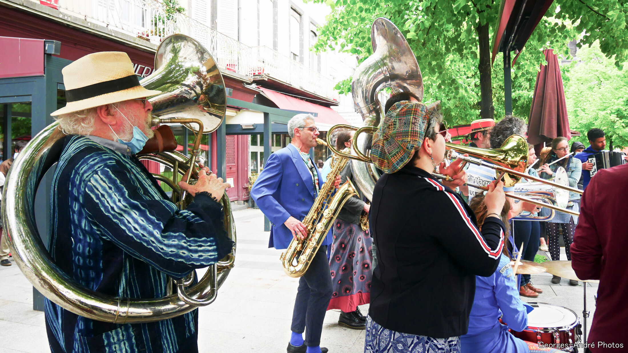 . Le vent soufflait très fort depuis la nuit et chacun s'attendait à des rafales violentes. Faut-il croire que les cris eurent un souffle particulier qu'ils en découragèrent, bien souvent le vent de souffler bien trop fort ? Le sambagogo avec sa chorégraphie et ses tambours impressionnants, habitué des foules enthousiastes s'est bien dérouillé les jambes en apportant une belle énergie complice à cet après-midi ensoleillé quoique soit son propos. Devant le musée Baroin, le Lip Sync Challenge a encore frappé (les esprits) avec son culot assumé et joyeux pour le plaisir des yeux et des oreilles ; un air de spectacle quand ils et elles nous manquent tant et encore. En regardant la vidéo de cette marche, vous verrez l'ambiance, les danses improvisées, les chorégraphie des slogans et la joie d'être là. Au retour sur la place de la Victoire, l'orchestre KTIPIETOK a enchanté ses auditeurs et donné à beaucoup l'envie de bouger les pieds si ce n'est plus et bien des enfants en admiration. Chapeau le Ktipeitok ! plus de 20 musiciens avec accordéons, vents et cuivre qui claquent comme des étincelles de printemps et une vraie joie communicante qui appelle une prochaine fois d'urgence. Avec la musique et ces musicien·nes, pas d'idées sombres d'avenir, juste le bonheur du présent. On a marché. Il faudra marcher encore et plus encore pour que ces menteurs qui nous gouvernent admettent que le peuple veut être entendu maintenant. La jeunesse n'attend pas et ne veut plus de vos mensonges et de vos leurres. Prenez-y garde.