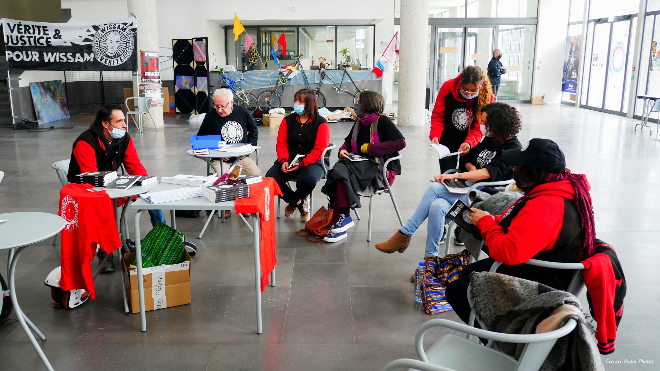 En ce début d'après-midi de samedi, dans le hall de la Comédie de Clermont-Ferrand, occupée depuis le 15 mars par les professionnels de la Culture, tandis que le soleil brille dehors, un groupe de personnes portant un même tee-shirt s'installent en son centre, grave et silencieux. Le tee-shirt est bien connu : c'est celui du « Comité Vérité Justice Wissam ». Outre Guy, Elise et Will, membres de ce comité, voici Zohra, la mère, Warda soeur cadette et Marwa sœur aînée qui viennent lire quelques pages du livre que Farid El Yamni vient de publier, recueil de ses écrits poignants, si puissants écrits au fil des années.