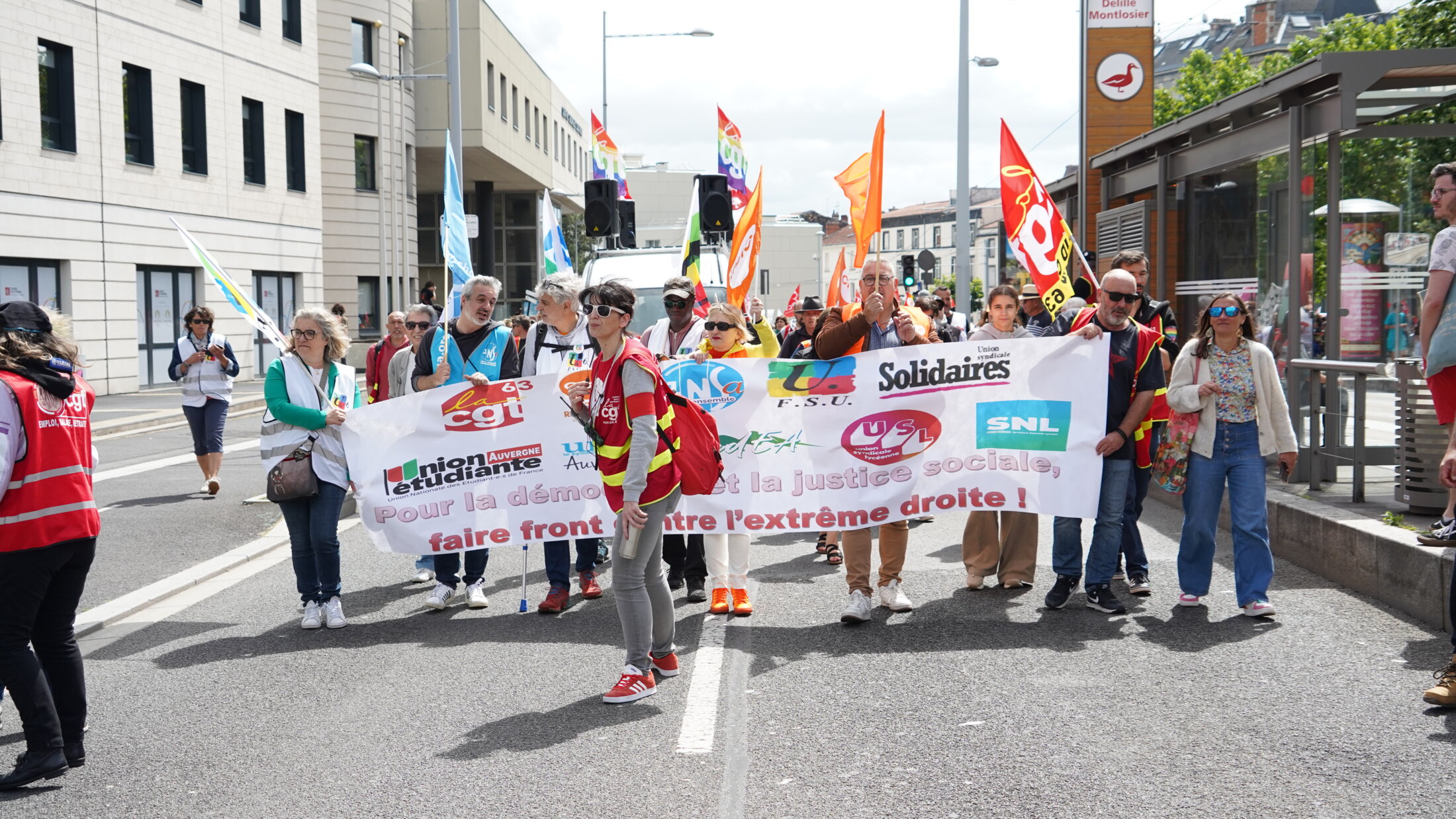 Pour cette première manifestation intersyndicale* depuis le double choc du 9 juin – score désastreux aux Européennes, dissolution au meilleur moment pour permettre au RN d'accéder à Matignon - la mobilisation populaire de ce samedi 15 juin à Clermont-Ferrand a répondu à cet appel avec plus de 5000 personnes qui ont défilé de la place Delille à celle de Jaude.