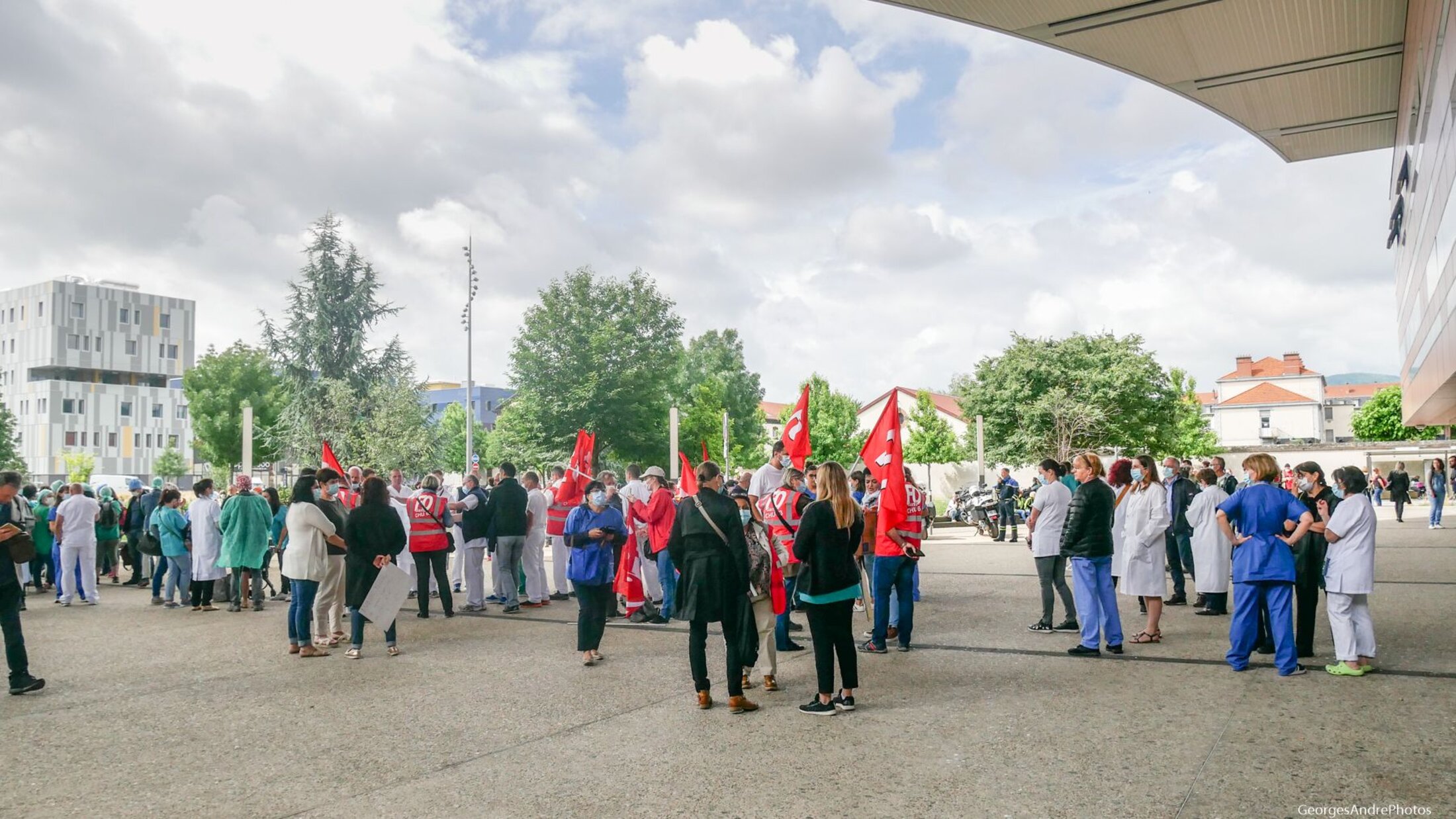 Deux cortèges sont partis de chacun des deux sites principaux du CHU, Gabriel-Montpied et Estaing, pour converger sous les fenêtres de l'imposant bâtiment de l'Agence Régional de Santé où une délégation fut reçue par la direction locale de l'ARS qui… transmettra.