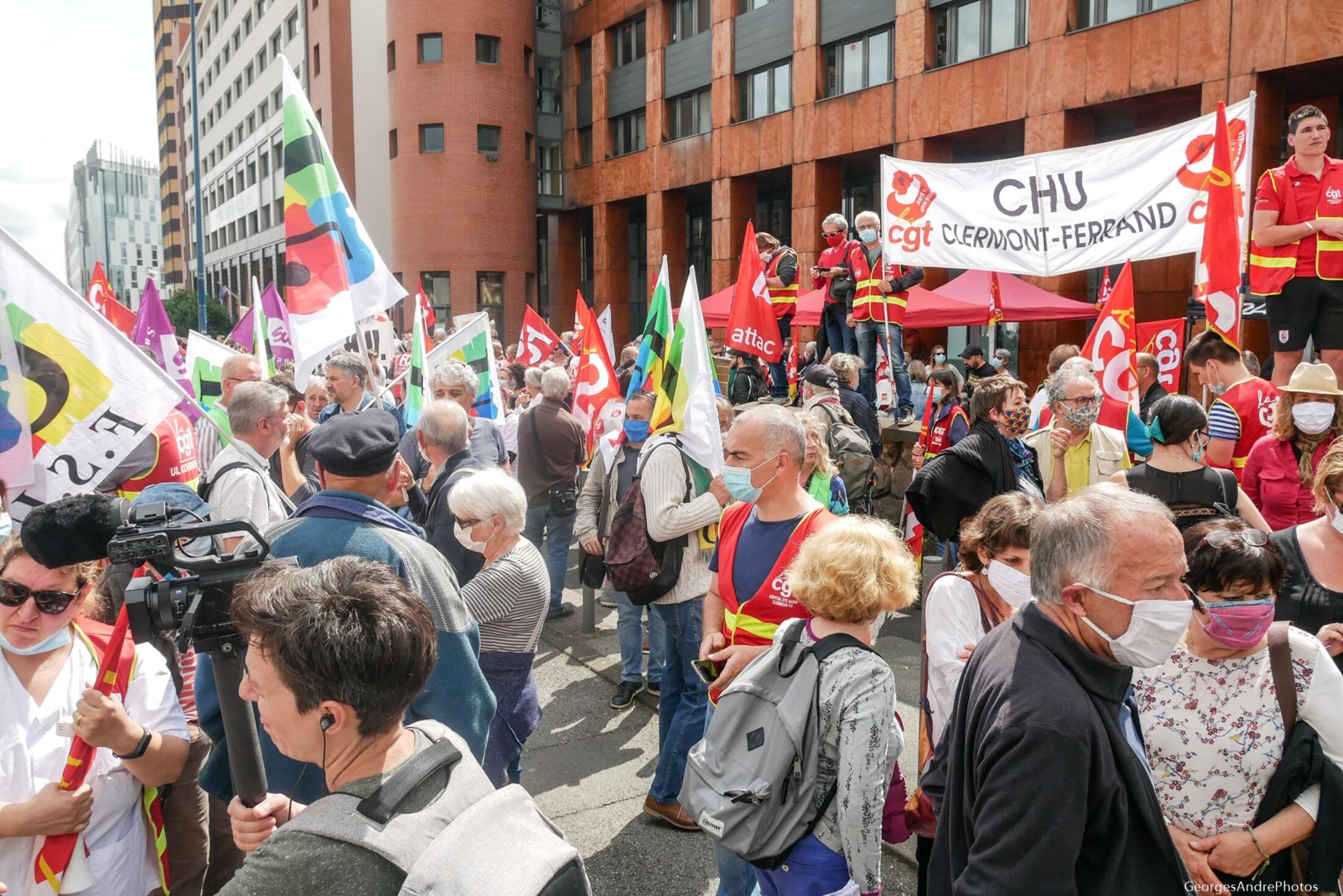 Clermont-Ferrand. Ce 16 juin, à 11heures, à l'appel de la CGT-CHU, F.O-CHU, de SUD Santé-sociaux et du Collectif inter-hôpitaux, une manifestation des soignants, et personnels médico-sociaux publics et privés de la ville et au-delà était organisée sur le thème « Macron, Philippe, Véran, assez de mensonges ! Ni médaille ni charité ! Plus d'effectif, plus de salaire ! ». Ce rassemblement réussi avec plus d'un millier de personnes a voulu peser sur le « Ségur de la santé » en cours.