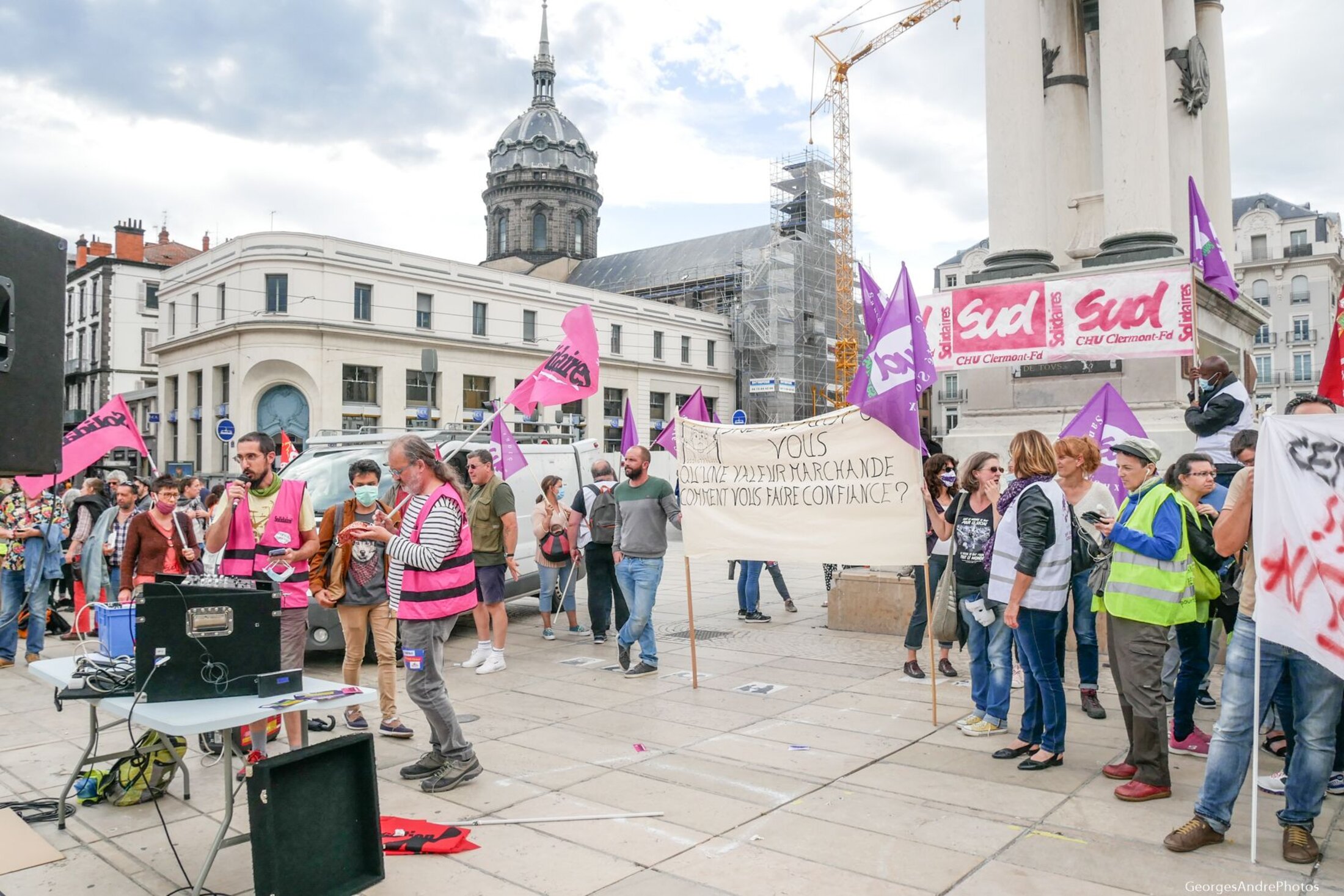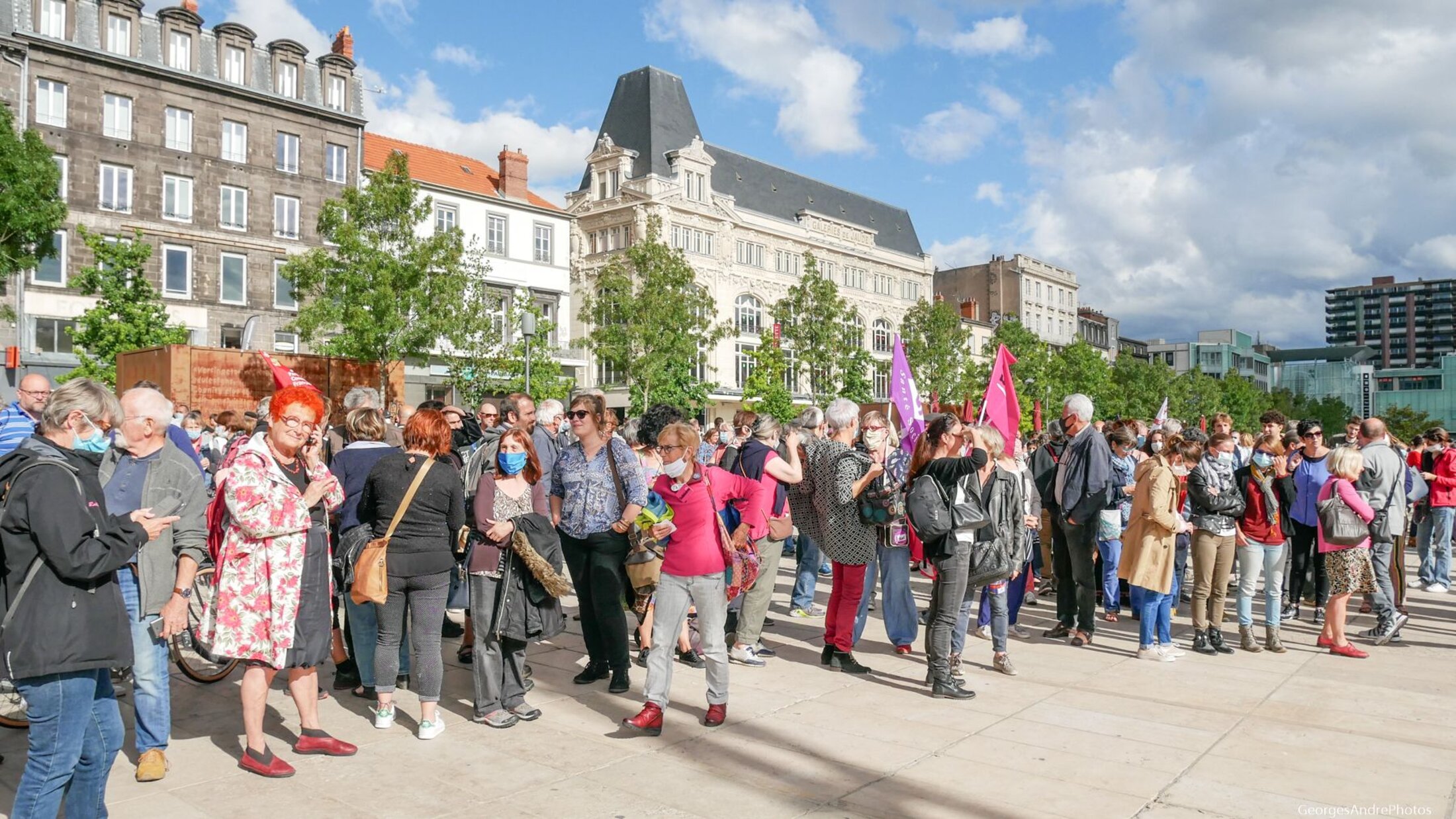 Ce même 16 juin, à 18h, un rassemblement place de Jaude était organisé par Sud Santé/sociaux, Solidaires Auvergne, UNEF, ATTAC, Réseau ESF, Chôm'Actif et précaires, Collectif médico-sociaux 63... en direction des soignants et de l'ensemble de la population sur le thème du soutien aux soignants et un plan d'urgence pour l'hôpital public.