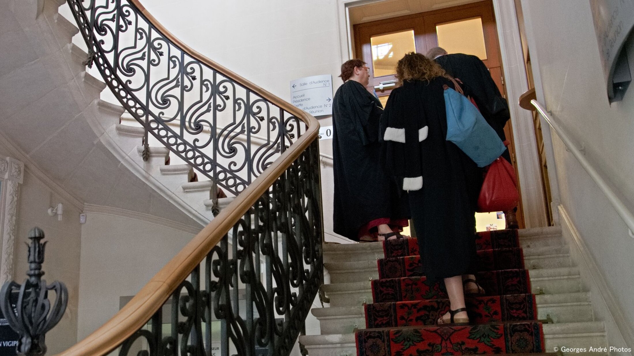 Les avocat·es voulaient entrer dans le Tribunal administratif pour rencontrer sa présidente. Ils ont trouvé porte fermée. Au bout d'un certain temps d'attente, la porte laisse passer trois personnes dont le bâtonnier Isabelle Dubois.