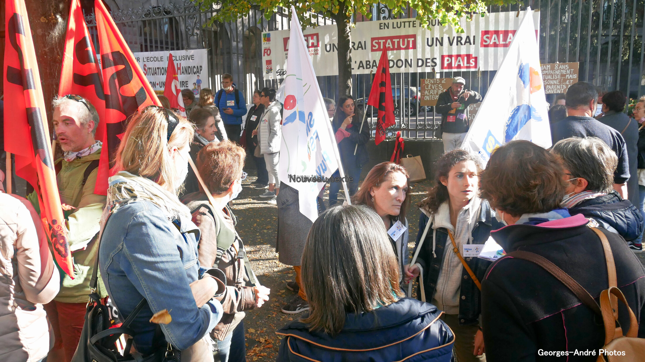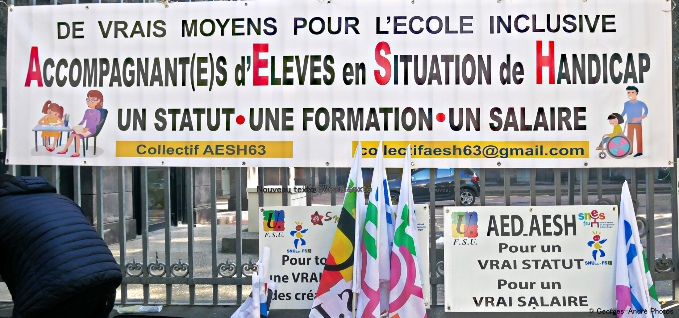 Le rassemblement devant le rectorat ce 19 octobre des Aesh, rassemblées dans leur collectif, des syndicalistes du SNES et SUIPP-FSU, FNEC-FP-FO, CGT Educ'action, SNALC, SUD Education a été un vrai succès avec un nombre impressionnant de participants dépassant largement la centaine, une première d'ampleur sur Clermont-Ferrand pour ces AESH en colère exprimant tout autant leur désarroi et leurs difficultés à subvenir à leurs besoins et ceux de leurs familles avec ces salaires de misère totalement indignes. De nombreux cartons portés sur le dos le disent. Des bulletins de salaire sont affichés pour en démontrer l'indignité et la difficulté extrême d'en vivre. Reçues en délégation au rectorat, le constat est amer. En substance, pas de sou c'est le ministère qui décide. Le fameux état-employeur ... Consulter le blog de Daniel Calin très complet.