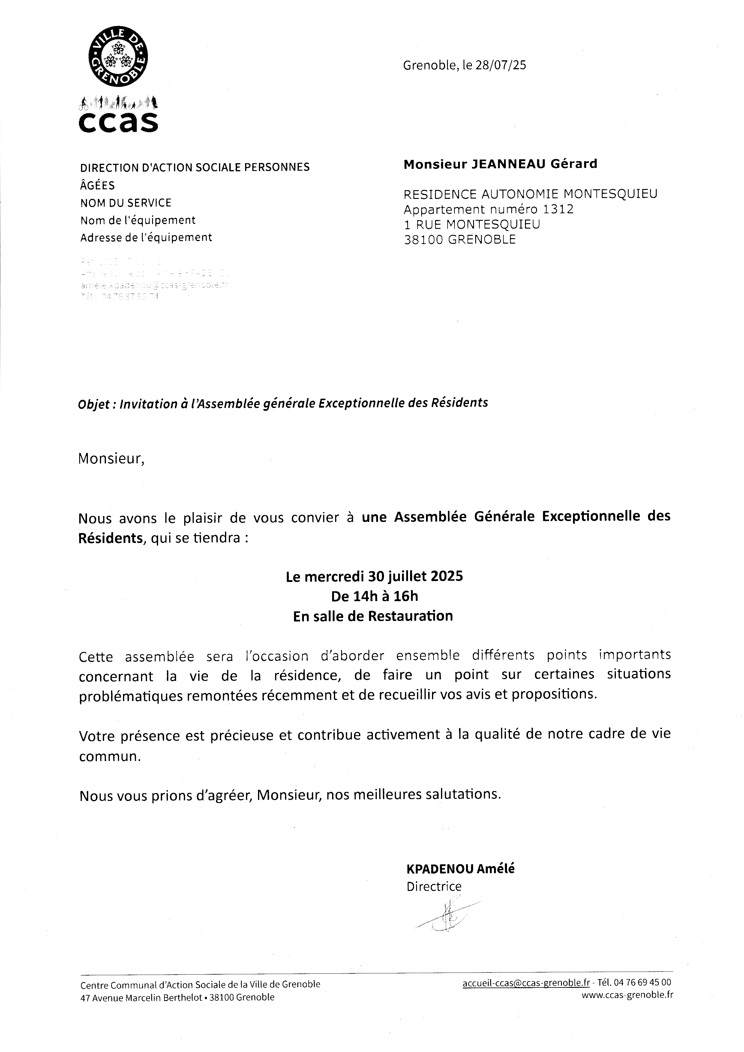la fameuse convocation auprès du CCAS par les bons soins de la directrice de la résidence Montesquieu