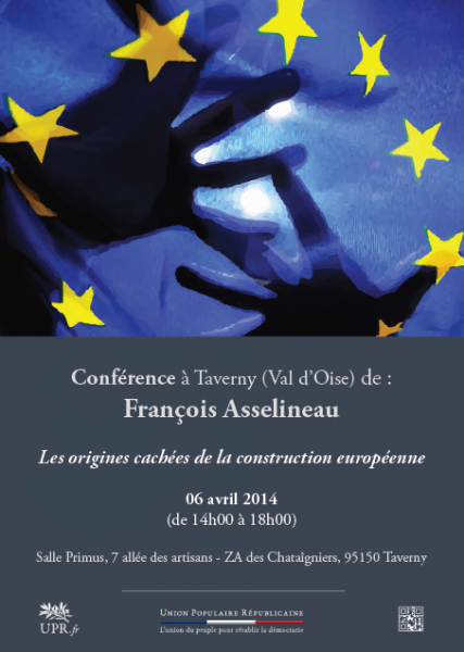 «Les origines cachées de la construction européenne» : une conférence de François Asselineau à Taverny, le 6 avril 2014