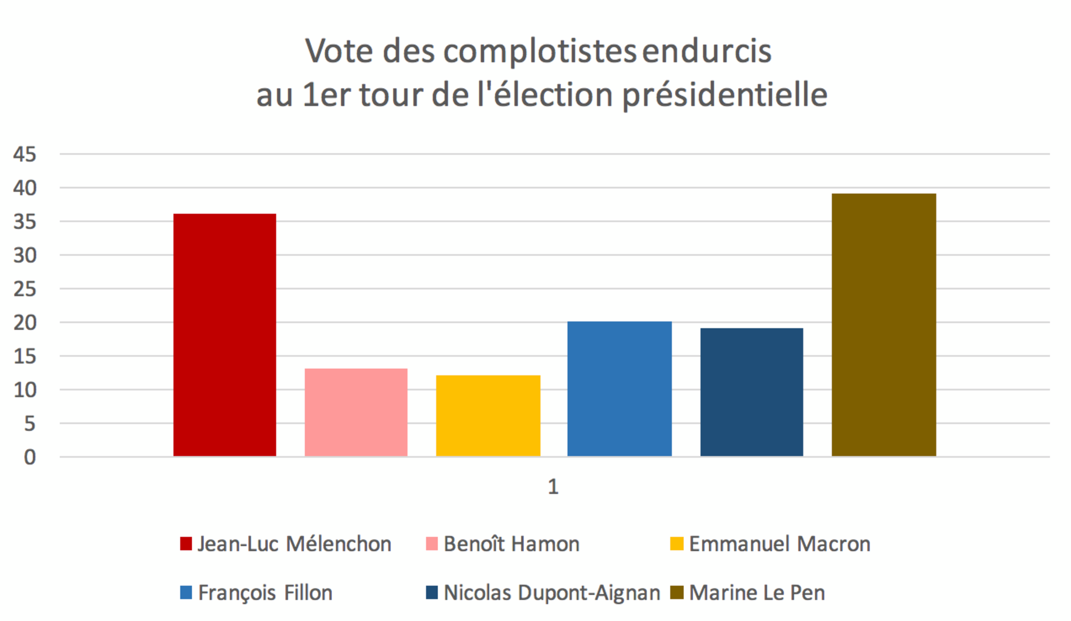 Voilà les chasseurs de conspirateurs pris en flagrant délit de manipulation de leurs données. Les partis de gauche attirent un nombre comparable de «non-complotistes». Notons le cas particulier des verts, alliés des socialistes, apparemment très endurcis au complot. Ce sondage mesure certainement quelque chose, mais pas ce que ses commanditaires voudraient.