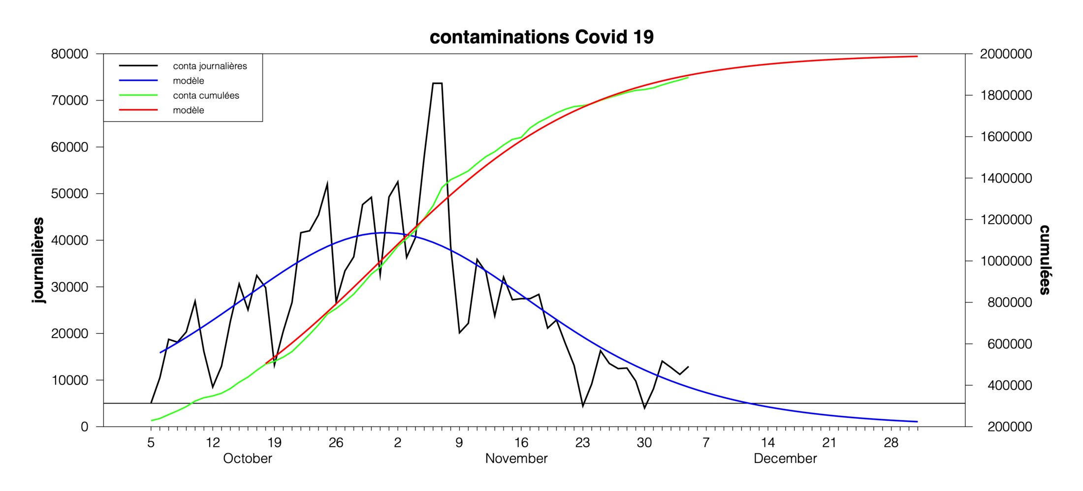 Alors qu’il y a quelques jours seulement, les prévisions quant au passage des 5 000 cas étaient bonnes (au 12 décembre), voire très bonnes (au 7 décembre), elles se dégradent depuis quatre jours. Si la population se reprend et comprend que l’épidémie est loin d’être terminée, la date du 14 décembre est encore possible (voir le graphique). La marge de manœuvre est cependant plus qu’étroite. Si les comportements ne changent pas, une simulation, où le nombre de contaminations ne baisse pas dans les trois prochains jours, indique qu’au 15 décembre le chiffre des contaminations serait bien au dessus des 5 000 cas espérés. Il ne reste donc que quelques jours pour réagir. Sinon, ce sera trop tard.