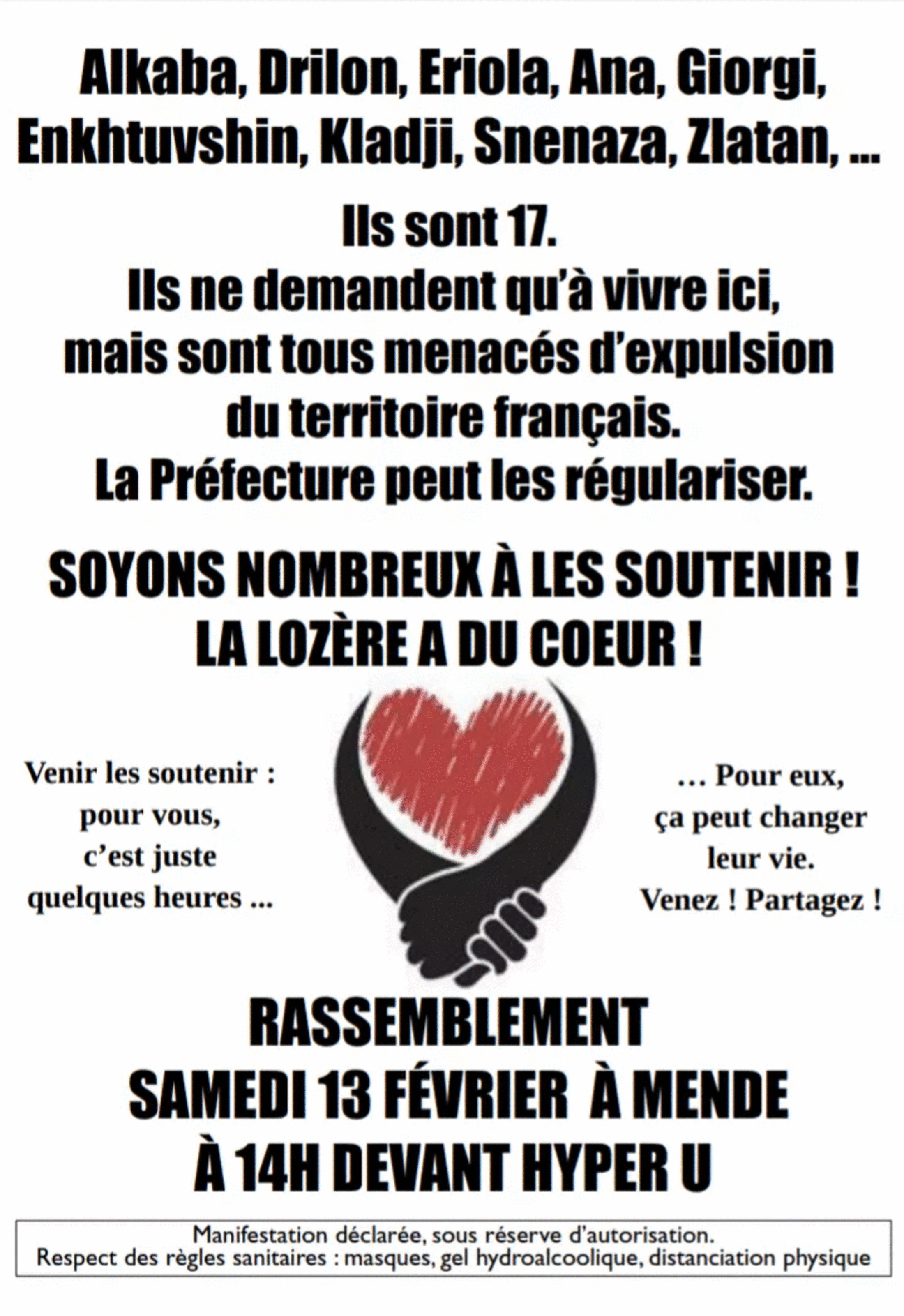 En Lozère, à Mende, demain se tient une manifestation de soutien à 17 personnes menacées d’obligation de quitter le territoire français (OQTF).