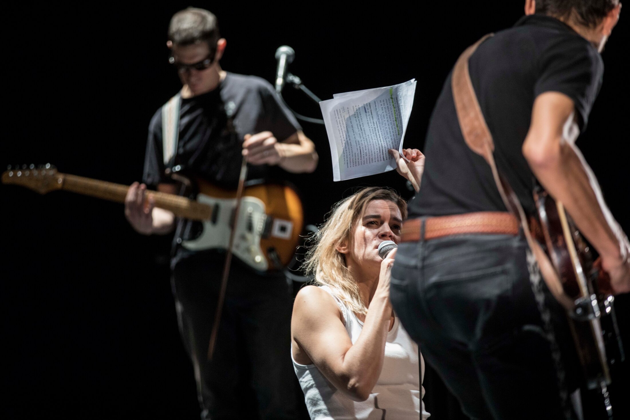 Sur scène, deux musiciens, l’un à la guitare, l’autre à la basse, accompagnent la comédienne Marie-Sophie Ferdane qui avait créé le rôle en 2017. L’histoire narre la rencontre fictive entre une icône du rock et une jeune fille et la transformation de celle-ci au contact de la chanteuse. Deux portraits de femme qui se dévoilent en parallèle, celui de l’adolescente qui grandit dans un village près de Marseille, et celui de la femme émancipée de trente ans, chanteuse adulée dans le monde entier. La première, terne, dépourvue de désir, tente de se construire, cherche la vie que la seconde dévore. Un théâtre concert dans lequel la musique et la littérature s’entrechoquent, où l’on croise Rimbaud et Dylan, sources d’inspiration de Patti Smith, Duras, la Callas, mais aussi Virginia Woolf, la cinquième symphonie de Malher, les femmes libres et les bad boys, des guitares électriques et des rêves, beaucoup de rêves. La crise d’adolescence aura pour échappatoire le Rock’n Roll de la contre-culture. « On n’est pas sérieux quand on a dix-sept ans ». (Arthur Rimbaud, « Roman », 1870, in Arthur Rimbaud, Reliquaire, poésie, L.Genonceau, 1891)