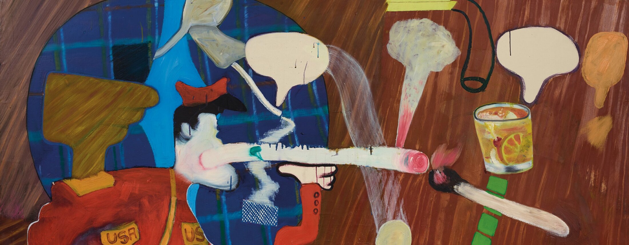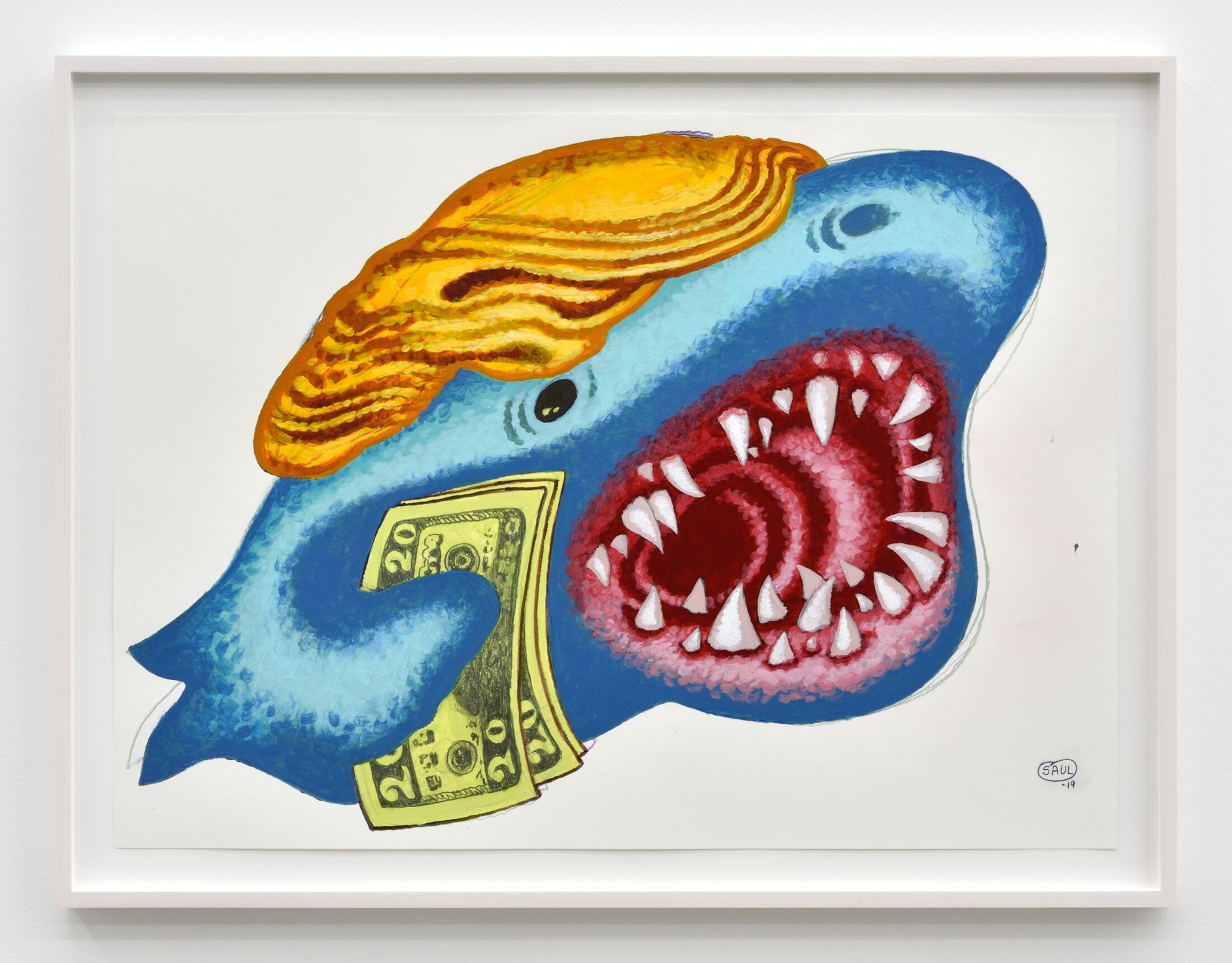 Sous ses aspects grivois et colorés, la peinture de Peter Saul, faite d’excès et d’humour, raconte sans concession la complexité de la société américaine, ne cessant, encore aujourd’hui, de dénoncer les aberrations du monde. L’artiste, qui abhorre le politiquement correct et le « bon goût » – « Je fais du tort au bon goût, mais c’est une bonne chose[10] » dit-il – reste l’un des peintres les plus influents pour les jeunes générations – il annonce Phillip Guston, influence Mike Kelley – et, indéniablement, pour les artistes urbains : il n’y a qu’à voir l’immense respect et la grande fierté qu’ont éprouvés Cleon Peterson et Todd James à exposer à ses côtés. Ces deux-là, flanqués de Peter Saul et de Tania Mouraud, démontrent si c’était encore nécessaire qu’ils appartiennent à une seule et même famille, que s’il n’y a pas un art contemporain mais bien des arts contemporains, il n’y a qu’une famille d’artistes.