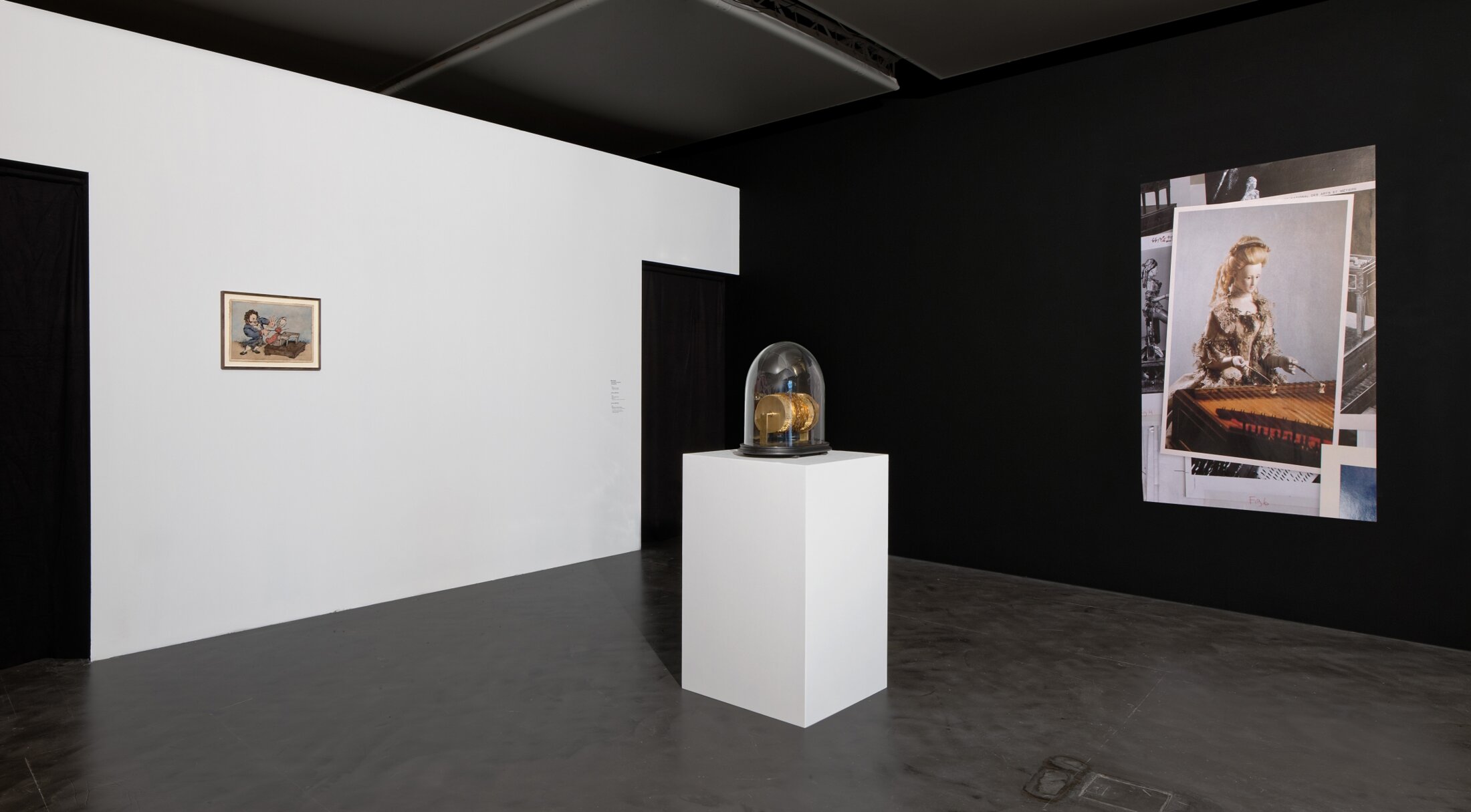 L'exposition « L’air des infortunés », qui vient de s’achever au FRAC Franche-Comté, trouve son point de départ dans la rencontre de Nino Laisné (né en 1985 à Bordeaux, vit et travaille entre Besançon et Madrid) avec « la joueuse de tympanon », présentée dans le salon des automates du Musée des arts et métiers à Paris. Tout à la fois metteur en scène, dramaturge, compositeur, arrangeur, l'artiste développe un travail à la croisée de l'art contemporain, la musique traditionnelle d'Amérique latine et la musique baroque. Ce diplômé de l’Ecole Supérieure des Beaux-arts de Bordeaux est un ancien résidant de la Casa Velasquez l’Académie de France à Madrid dont il est membre. Chacun de ses projets accuse une double écriture, visuelle et musicale. Si au début, ses images sont silencieuses, au fil du temps, la dimension sonore prend une place de plus en plus grande, pour faire jeu égal avec celles-ci. Récemment, il cosigne avec François Chaignaud, la conception de « Romances Inciertos. Un autre Orlando », son premier spectacle, dont il assure la mise en scène et la direction musicale. L’exposition « L’air des infortunés » est le fruit d’une étroite collaboration avec le FRAC Franche-Comté dont le premier contact remonte à 2013. Les affinités autour du son et de la musique, très présents dans les collections de l’institution, débouchent sur une invitation en résidence de deux mois qui se prolonge les trois années suivantes. Le projet tourne autour du célèbre automate « la joueuse de tympanon », conçu en 1784 par l’horloger Pierre Kintzing et l’ébéniste David Roentgen et conservé au Musée des arts et métiers à Paris. Vêtu d’une robe « petite Dauphine », l’androïde, dont on raconte que les cheveux étaient ceux de la reine et que sa robe fut taillée dans une robe de la souveraine[1], frappe réellement les cordes de l’instrument avec de mailloches, sortes de petits marteaux, à la faveur d’un mécanisme ultra complexe animant ses bras, sa tête et son buste. L’objet est offert à Marie-Antoinette. Une lettre du 4 mars 1785, signée Joseph Marie François de Lassone, médecin de la reine, indique le choix de cette dernière d’en faire don à l’Académie des sciences. Ainsi, l’automate fut préservé en étant conservé par l’institution, avant son dépôt au Conservatoire des arts et métiers, en 1864, où, il est intéressant de le noter, il fut remis en état par l’illusionniste Robert Houdin[2].