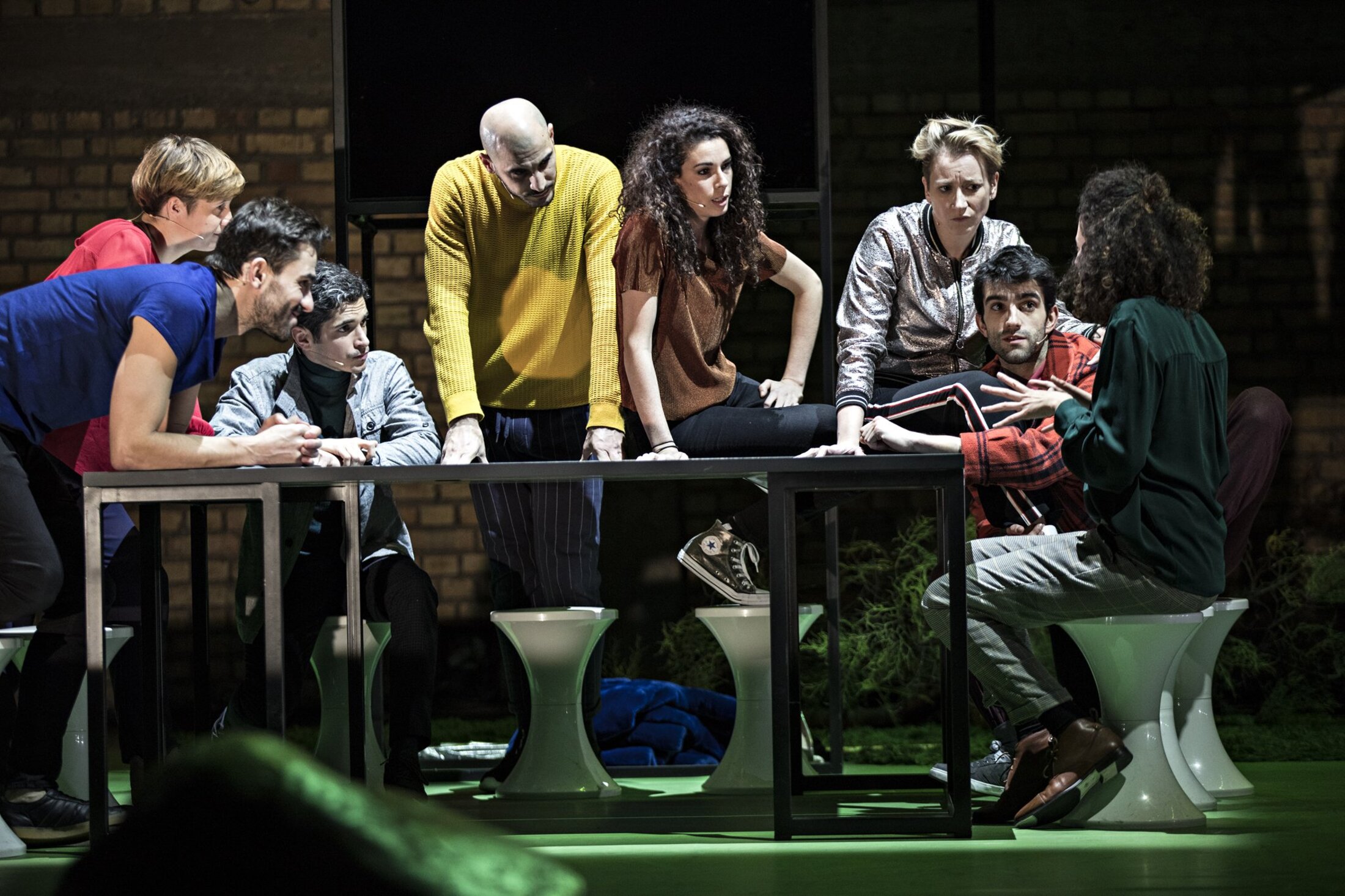 C'est donc un état des lieux de l'Europe sans appel que dresse la pièce, constat qui se mue en état d’urgence. De la rage nait un souffle. A partir des récits des huit interprètes, qui sont autant de trajectoires où s’affirment leurs différences, leur singularité, leur contemporanéité dans les choix sociétaux qu’ils revendiquent – homoparentalité, ou plutôt triparentalité – ils expérimentent, avec difficulté souvent, l’idée d’un sentiment européen. A côté de l’Europe officielle, gigantesque marché de consommation basé sur la fameuse "croissance", unique moteur de l’économie occidentale annoncée comme éternelle et qui se révèle déjà caduque en raison de sa responsabilité dans la disparition des ressources naturelles mondiales qu’elle a elle-même engendrée, Falk Richter laisse entrevoir la possibilité d’une Europe des peuples. "On est là" s'exclament trois des interprètes dont les noms, s'ils rappellent le Maghreb, le Moyen-Orient, sont aussi ceux de l'Europe, une Europe postcoloniale. Les deux français reprennent ensemble la bouleversante chanson de Stromae "Papaoutai", d'un génocide l'autre, pour que tous se remémorent qu'en octobre 1961, à Paris et sous l'ordre du préfet Maurice Papon – qui vingt ans auparavant envoyait les juifs de Bordeaux en déportation –, la France jetait les Algériens à la Seine.