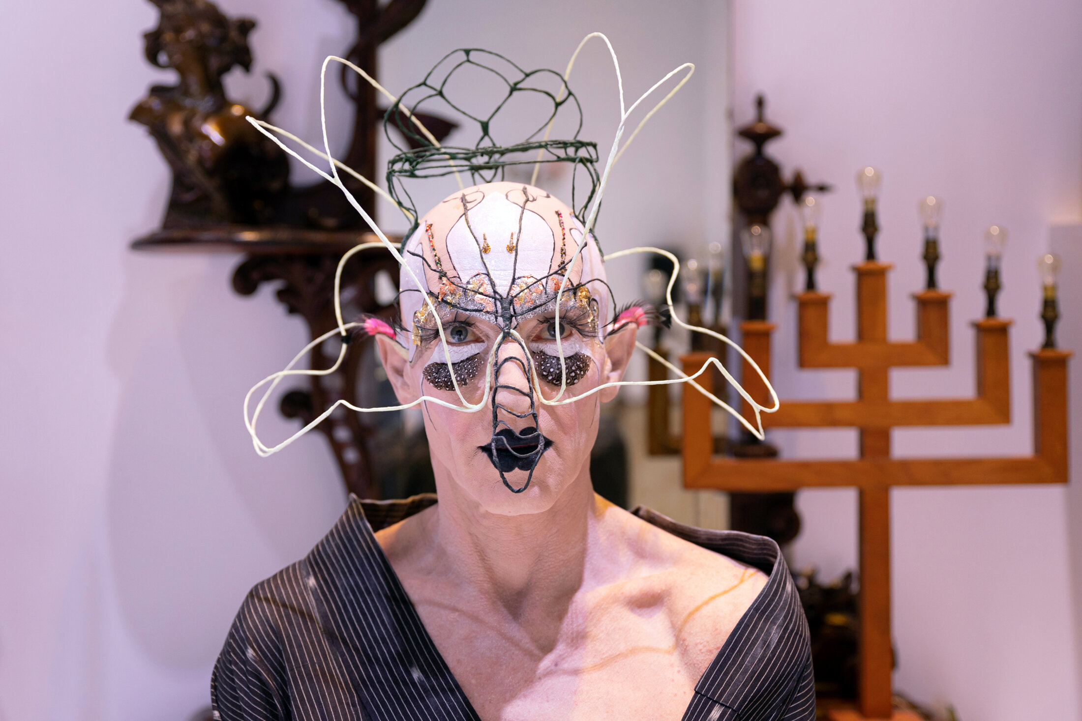 Performeur, chorégraphe et plasticien installé en France, Steven Cohen est né et a grandi en Afrique du Sud à une époque où le pays était encore placé sous le régime de l’Apartheid[1]. Dans son travail, il envisage le corps comme un objet scénographique pour mieux révéler ce qui se trouve à la marge, relégué dans les zones périphériques de la société, un espace qu’il connait bien en tant qu’homme blanc, sud-africain, juif et queer. Il met ainsi en scène son propre corps imprégné de récits intimes, point de départ d’une exploration des grâces et disgrâces de l’humanité. Créature à la fois solaire et lunaire, homme-femme dont on ne sait s’il est fée ou sorcière, il s’invente des identités fluides et hybrides qui trouvent leur origine dans des contraires qui, ensemble, se tiennent. Chez lui, la zone de travail est envisagée comme une sorte de territoire très large qui s’affine au fur et à mesure que le projet se développe, avance. Sa pièce précédente, « Put your heart under your feet… and walk », répondait à la question aussi douloureuse qu’insoluble de comment vivre après la mort de l’être cher, prenant la forme d’une cérémonie d’adieu qui se muait petit à petit en célébration de l’énergie vitale et en profession de foi artistique.