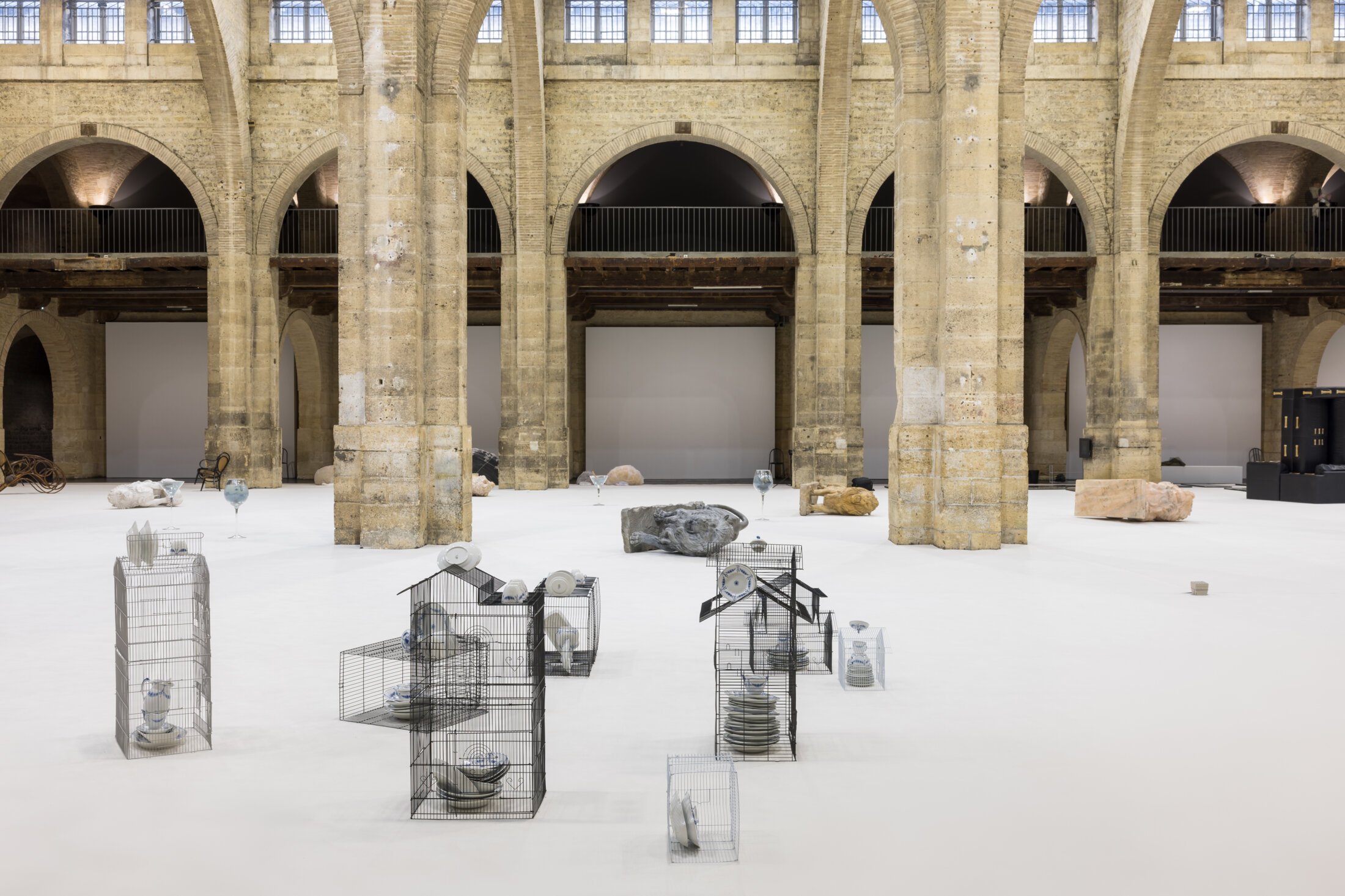 Fausse porcelaine royale de Chine, toboggans-éléphants, lions en marbres, les objets qui peuplent depuis vingt ans l’univers formel de Nina Beier ont élu domicile cet été dans la grande nef du Capc – musée d’art contemporain de Bordeaux, qui consacre à l’artiste danoise sa première exposition monographique dans une institution française, une exposition aux allures de rétrospective infidèle tant les pièces produites au cours des deux dernières décennies sont reconfigurées. Intitulé « Auto », le projet est simultanément présenté au Capc et au musée d’art contemporain Kiasma à Helsinki[1] en Finlande. Les deux expositions, bien qu’autonomes, se complètent pour couvrir vingt ans de pratique artistique de Beier, incluant la sculpture, l’installation et la performance. Au Capc, l’invitation fait écho au contexte particulier de l’institution bordelaise qui occupe un ancien entrepôt de denrées coloniales, construit en 1824 pour répondre aux besoins grandissants d’importation des colonies françaises à destination de l’Europe occidentale. Beier décide de ne pas utiliser les murs du musée pour se concentrer sur l’intérieur de la nef dont elle recouvre le sol d’une moquette blanche, changeant le statut du lieu pour lui conférer une dimension domestique.