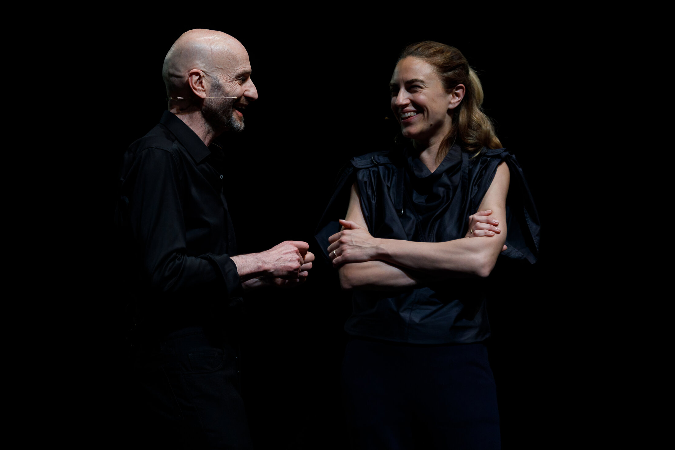 « Le nouvel homme » du collectif flamand DE HOE[2] est la suite d’une autre pièce, « L’homme au crâne rasé », créée d’après le roman de Johan Daisne il y a une vingtaine d’années par Natali Broods et Peter Van Den Eede, qui en étaient déjà les interprètes, et dans laquelle un homme et une femme se retrouvaient dans un restaurant longtemps après leur rupture et évoquaient leur liaison révolue. La nouvelle pièce, qui en emprunte jusqu’au décor, interroge l’évolution des existences séparées des protagonistes et la survivance de leur amour face aux changements sociétaux. « Le plus souvent, le point de départ de notre processus de création est instinctif et chaotique ; ce n’est qu’après – et presque malgré nous – que se dessinent les contours d’un spectacle[3] » précise le collectif pour qui le moment le plus délicat réside dans la conclusion : « La pièce doit rester aussi parfaitement inachevée que possible, car ce n’est qu’ainsi qu’elle peut faire illusion », citant à ce propos Paul Valéry : « Perfectionner s’oppose à parfaire[4] ». Une délicate légèreté traverse la pièce de bout en bout. L’humour est l’arme idéale pour faire face aux affres qui jalonnent nos vies.