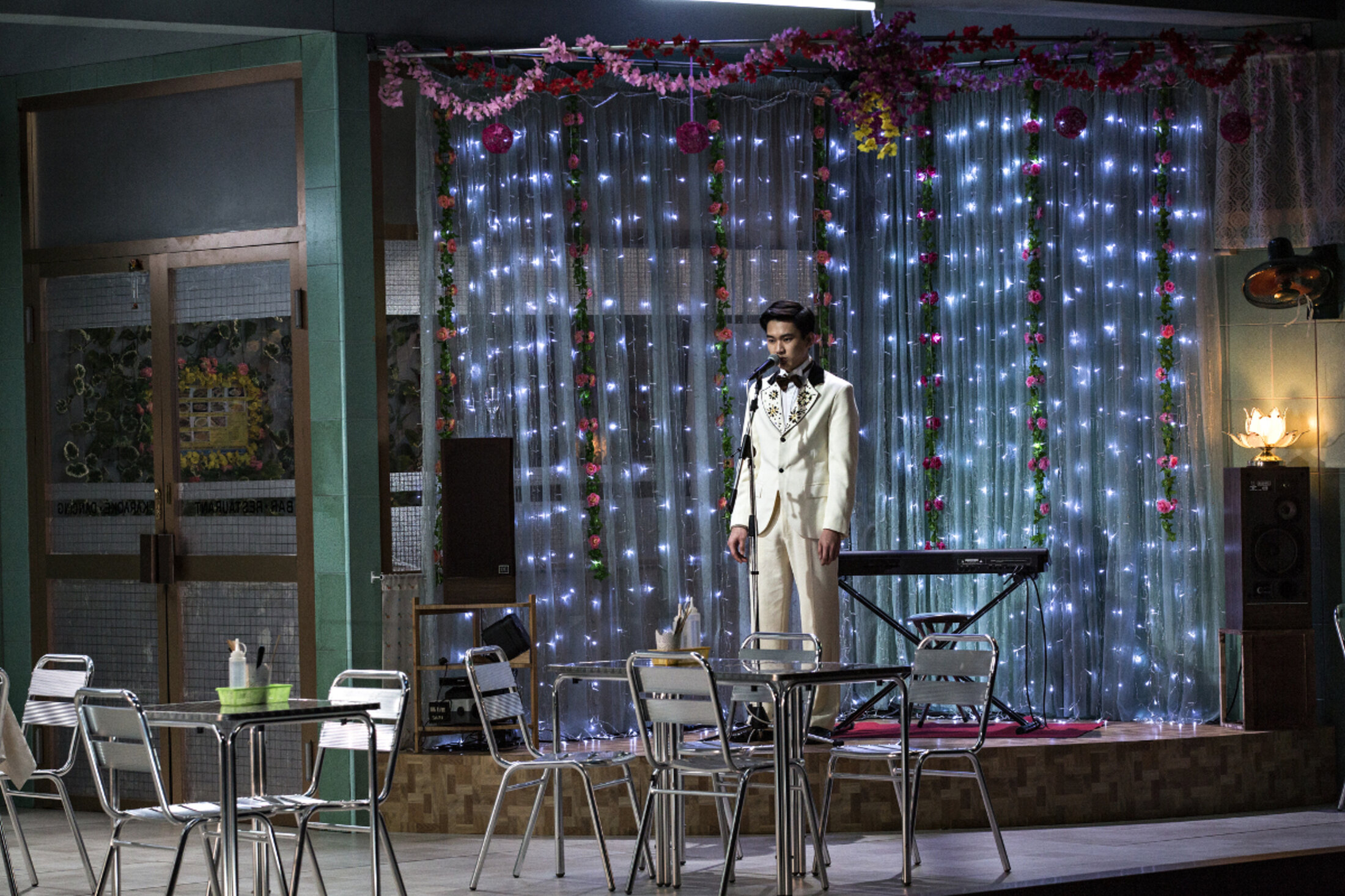"Tous les soirs après la fermeture, Marie-Antoinette pleure mais ça, personne ne le sait". Nous sommes en 1996, dans la salle d'un restaurant vietnamien de la rue du faubourg Saint-Antoine à Paris. Marie-Antoinette, la propriétaire, en assure le bon fonctionnement avec sa nièce. C'est dans ce décor immuable, au format cinématographique, que le public va appréhender durant plus de trois heures, l'histoire du Vietnam et celle, discrète et mal connue, de sa communauté d'exilés en France à travers des vies qui se croisent, celle d'une mère qui cherche son enfant, d'une femme qui quitte tout pour celui qu'elle aime, d'un jeune homme contraint de fuir parce qu'il chante en français pour les colons et de tant d'autres. L'incommensurable victoire des uns va condamner les autres à un exil interminable. Que l'on soit à Paris en 1996 ou à Saigon en 1956, le restaurant reste le même. Ces deux dates clefs – 1956, année du départ des Français et de bon nombre de Vietnamiens qui les soutiennent ; 1996, année où le gouvernement vietnamien autorise la diaspora à se rendre à nouveau dans le pays – donnent le cadre temporel et rythment la pièce qui oscille entre deux époques, entre deux langues, deux continents, deux mondes. Les chansons populaires de Christophe à Sylvie Vartan, interprétées par chacun des protagonistes sur la petite estrade aménagée qui sert de scène de karaoké, marquent les transitions temporelles et imprègnent la représentation d'une émouvante nostalgie. Le restaurant est le microcosme où se retrouve exilés vietnamiens à Paris et expatriés français à Saigon. Il est la métaphore du monde, de la société qu'il reçoit, de douleurs indicibles aussi. C'est un lieu de réconfort où chacun se retrouve afin de recréer la manière de vivre d'avant. C'est un lieu où l'on s'informe aussi, où l'on discute, échange, où l'on répète inlassablement les mêmes histoires pour se persuader que rien n'a changé. Ainsi, que ce soit ici ou là-bas, il devient un espace intemporel qui abrite toute une population déracinée. Aux vies en souffrance des réfugiés répondent parfois, à l’image du personnage incarné par Caroline Arrouas, celles de colons.