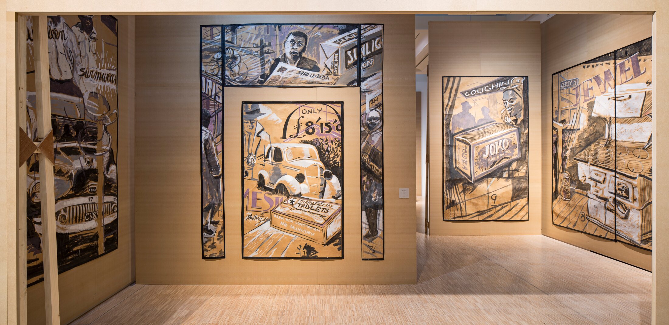 Première grande rétrospective en France des œuvres de William Kentridge (né en 1955 à Johannesburg, où il vit et travaille), « Un poème qui n'es pas le nôtre » est aussi la première exposition d'art contemporain de cette ampleur accueillie par le LAM[1], le musée de la métropole lilloise qui trouve son origine dans la donation de l’importante collection d’art moderne Dutilleul, complétée en 1999 par la dotation de l'association Laracine, riche de plus de 3500 œuvres d’Art Brut. La manifestation, coproduite avec le Kunstmuseum de Bâle, s'enracine dans les liens qui unissent Kentridge à la culture française et européenne. Elle débute par une évocation de Sophiatown à travers de grands décors immersifs que l’artiste a exécuté à la gouache sur d’immenses papiers Kraft à la fin des années 1980 pour la pièce éponyme de la Junction Ave. Theater company[2], qu’il cofonde en 1976 avec un groupe d’étudiants blancs de l’Université de Witwatersrand. Le quartier de Johannesburg incarnait jusque dans les années 1950 la diversité nationale, l’équivalent d’un Harlem sud-africain. La promulgation des lois racistes en 1948 conduit, entre 1955 et 1959, à sa destruction. La population noire, représentant près de 65 000 personnes, est déplacée vers Soweto. Sur l’emplacement laissé vide est construit un nouveau quartier dont le nom même porte en lui la brutalité extrême de la politique d’apartheid : Triumph. William Kentridge a vécu enfant les tensions entre noirs et blancs. Son père était l'avocat de Nelson Mandela lors du procès de la Trahison (1958-61) – sa grand-mère fut la première femme avocate d'Afrique de Sud. La question de la justice sociale guide cette famille juive d’origine lithuanienne, immigrée en Afrique du Sud pour fuir les pogroms. Kentridge a conscience très jeune de son environnement : « J’ai fait toute ma scolarité en sachant que je vivais dans une société anormale où il se passait des choses monstrueuses ». Diplômé en études politiques et africaines en 1976, il suit les cours de la Johannesburg Art Foundation jusqu’en 1978. Il acquiert très tôt une pratique du dessin. Son intérêt pour le jeu d’acteur va le conduire à Paris où il étudie le théâtre et la pantomime à l’école de Jacques Lecoq. A son retour en Afrique du Sud en 1983, il commence à produire des documentaires. Le bruit est omniprésent dans les dix-huit grands décors de Sophiatown où se côtoient l’écrivaine Nadine Gordiner, des gangsters, des prostituées, des magiciens. Au centre de la pièce, se trouve un vieux téléviseur sur lequel est projeté un documentaire. Kentridge recrée l’esprit de Sophiatown à sa manière.