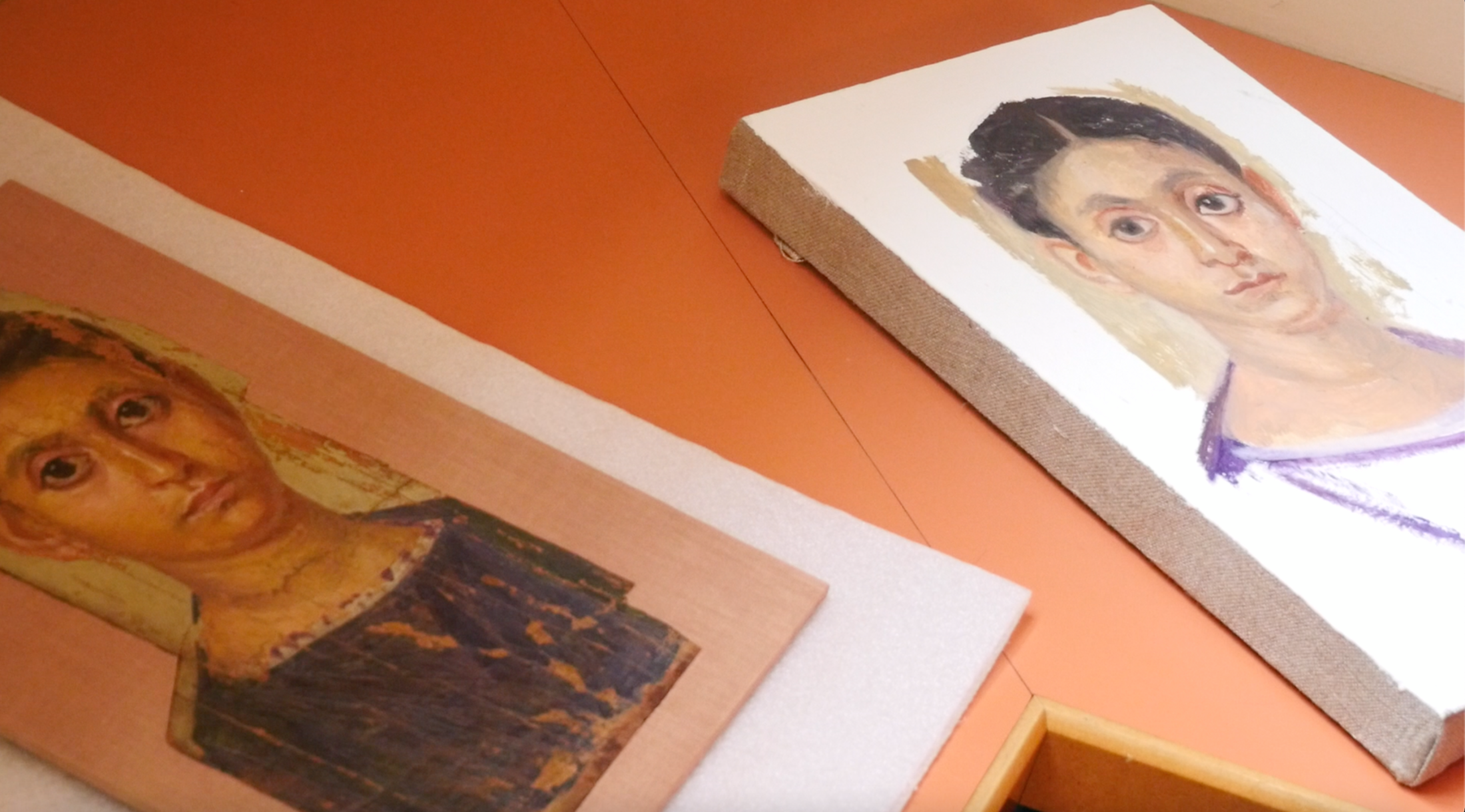[9] Peintures remontant à l’Égypte romaine exécutés à partir du Ier siècle (à la fin du règne de l'empereur romain Tibère) jusqu'au milieu du IIIème siècle : portraits funéraires peints d’individus, adultes ou enfants, insérés dans les bandelettes au niveau du visage de la momie.