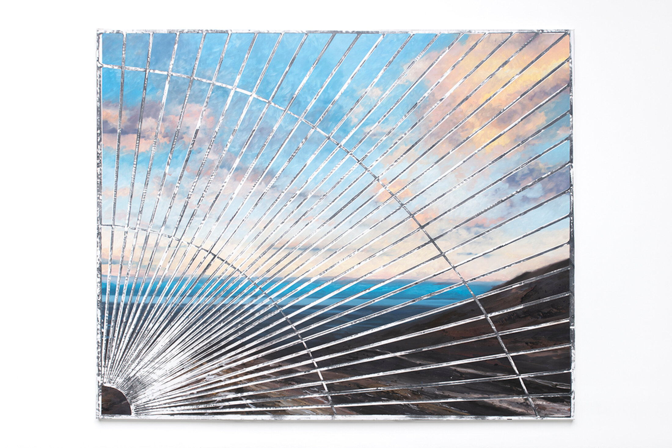 Dans l’espace singulier de La Verrière[1] à Bruxelles, Eva Nielsen (née en 1983 aux Lilas, vit et travaille à Paris) déploie une proposition artistique audacieuse et troublante avec son exposition « Aster », sous le commissariat de Joël Riff. Cette première exposition personnelle de l’artiste franco-danoise hors de France révèle une œuvre qui défait les conventions de la peinture de paysage tout en s’inscrivant dans une réflexion profonde sur la matérialité, la lumière et les marges du visible. L’exposition s’ouvre sur une impression de vertige, un sentiment d’immersion immédiate qui tire sa force de l’architecture unique de La Verrière. Cet espace, conçu comme une vitrine transparente ouverte sur le ciel, trouve un écho direct dans les toiles d’Eva Nielsen. Le toit vitré, qui inonde l’espace de lumière naturelle, dialogue avec les œuvres de l’artiste, marquées par des percées visuelles et des jeux de perspective qui redéfinissent les contours du monde représenté. Comme l’indique Joël Riff, « tout se donne du premier regard » dans cet espace, et Eva Nielsen exploite cette immédiateté pour créer une expérience physique, presque sensorielle, dans laquelle le visiteur est confronté à une tension entre l’évidence du visible et l’énigme des images.