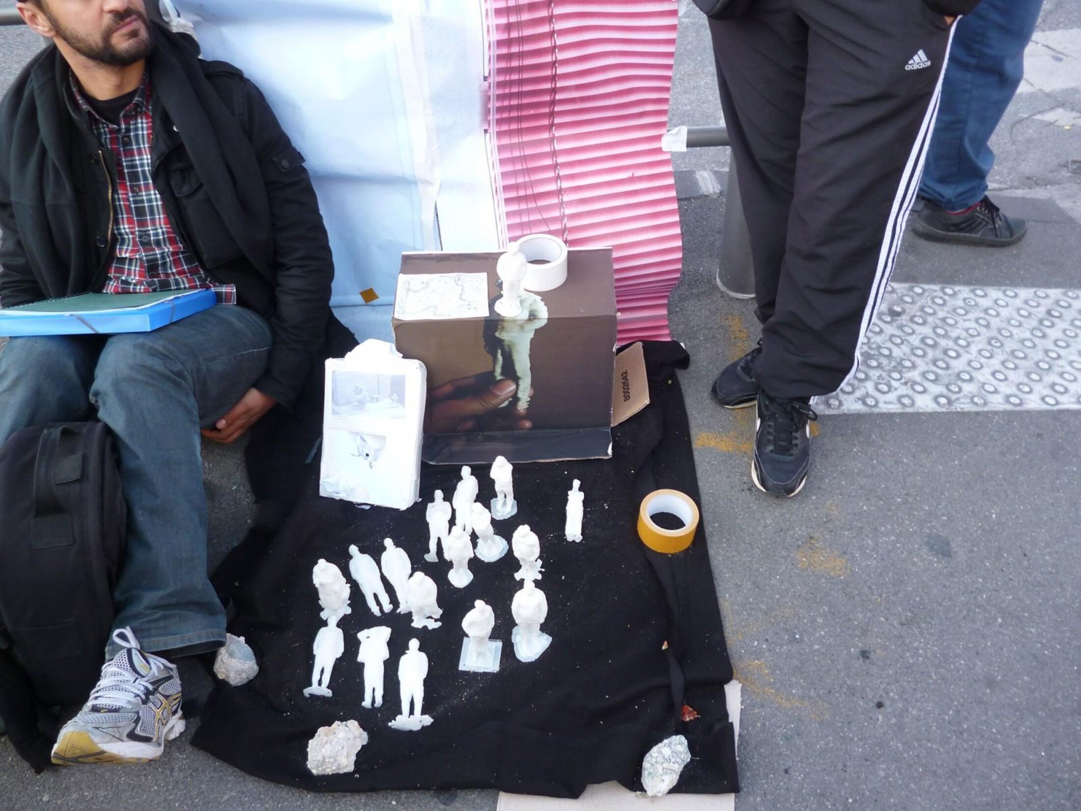 La même année, Mohamed Bourouissa projète de faire le portrait de personnes à la recherche d'un emploi en leur proposant de les ériger en monument. "L'utopie d'August Sander", ainsi nommée en référence au célèbre photographe (1878 - 1964) dont l'oeuvre ambitionnait de dresser "un portrait contemporain de l’homme allemand", suit un protocole artistique dont le but est d'occasionner des échanges entre personnes issues de divers horizons. Un studio aménagé dans un camion, le "fab lab mobile", est installé devant le pôle-emploi du quartier de la Joliette à Marseille. A l'intérieur, des imprimantes 3D fabriquent des figurines à partir du profil scanner des demandeurs d'emploi qui le souhaitent. L'artiste réinvente ici l'art du portrait tout en renouvelant le geste du sculpteur. Les sculptures figurines étaient enfin proposées à la vente à un prix dérisoire sur des marchés populaires, inconnus des collectionneurs. A sa façon, Mohamed Bourouissa interroge magistralement le marché de l'art