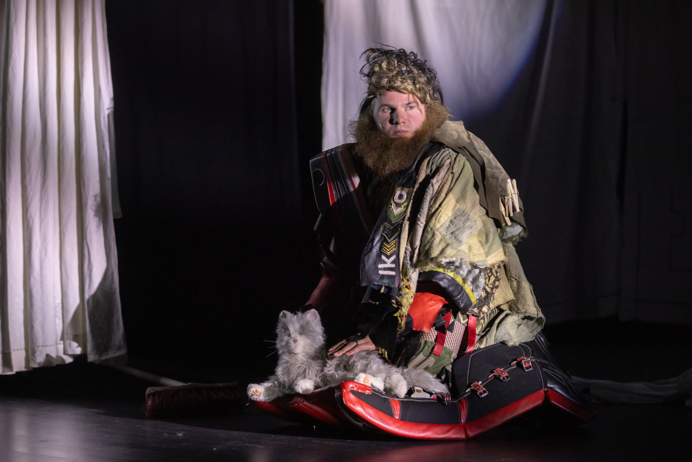 Préambule à la fois intime et ironique, la scène pose les bases d’une exploration autofictionnelle sur l’adoption et les origines perdues. Elle sert tout autant de transition fluide vers le cœur du spectacle, lorsque Dimitri Doré entre en scène sous les traits d’Oleg, son avatar fictif inspiré d’un guerrier viking. Il s’invite dans le salon virtuel du couple, marquant le passage du réel documentaire au fantasme poétique. L’ensemble crée un effet de collage fragmenté, dans lequel l’humour absurde du formulaire cache une profondeur émotionnelle sur les origines, l'absence et la reconstruction de soi.