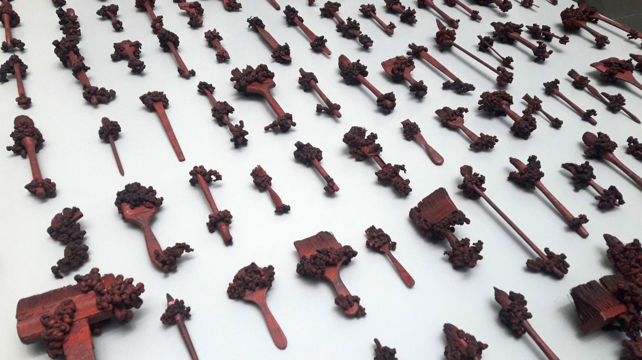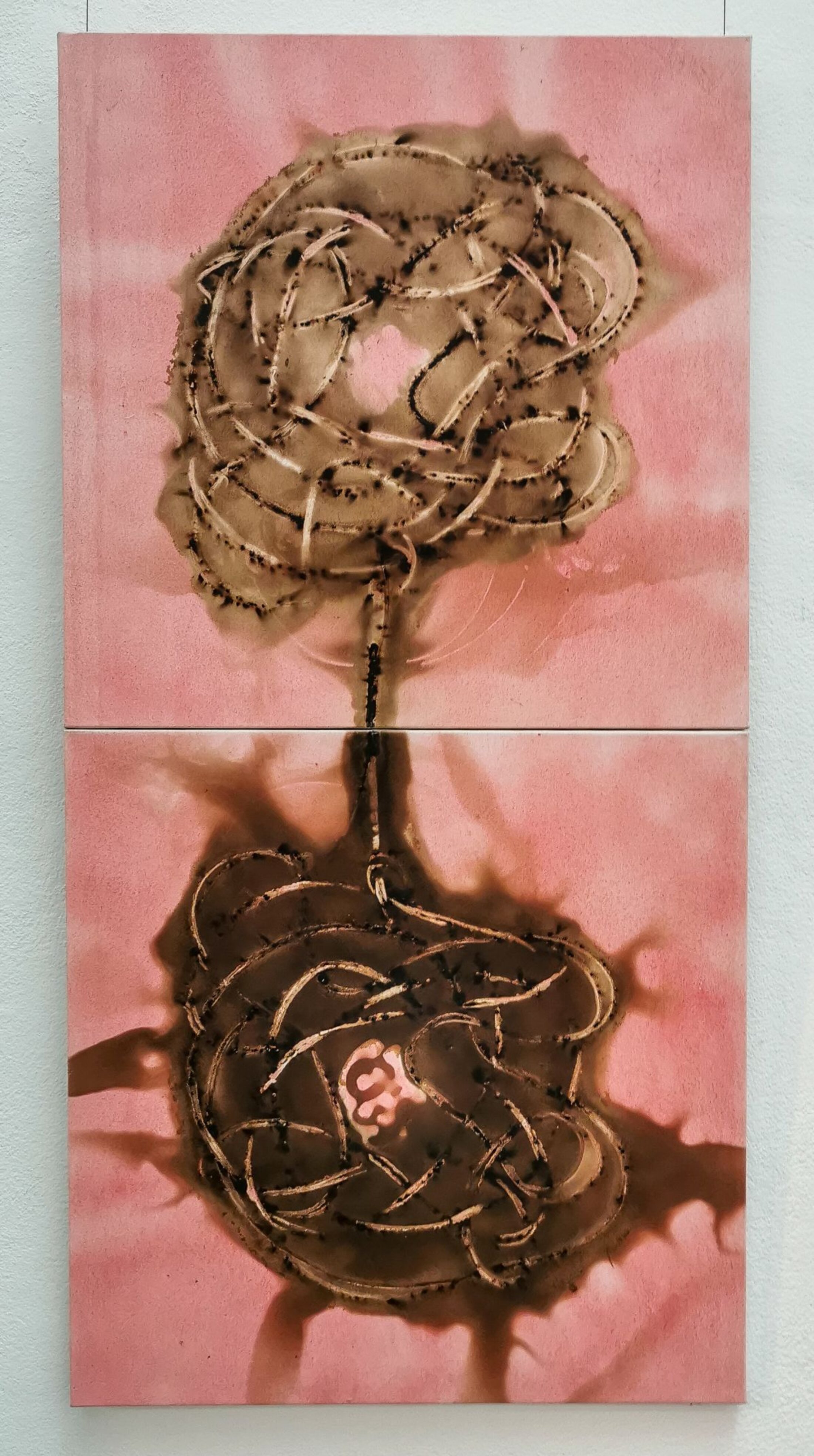 Singulière, l’œuvre de Christian Jaccard l’est assurément, et la donation est suffisamment représentative de son œuvre pour en rendre compte. Des peintures calcinées aux sculptures nouées, l’artiste recherche les tensions, les résistances qu’il rend palpable dans ses productions. On peut desceller, dans les deux pôles de sa création, dans l’empreinte et les nœuds, la reproduction de la nature « dans ses accidents[6] » et « dans ses processus » comme le fait l’historien de l’art Didier Semin. Christian Jaccard n’a jamais cessé de détourner les pratiques traditionnelles de la peinture. En plaçant la question de la trace au centre de son travail, il interroge la précarité même du vivant, notre condition de mortels.