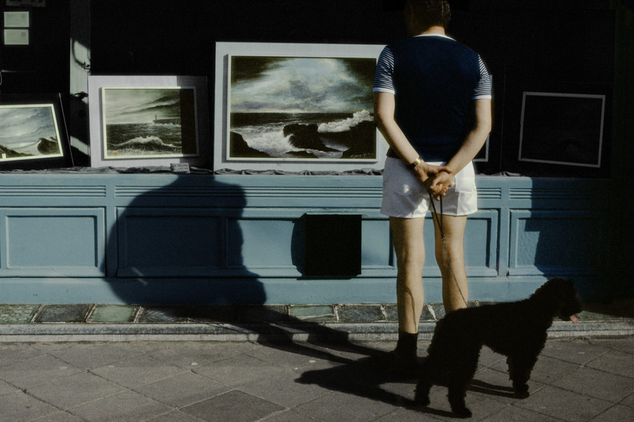 font clinquantes, vibrantes, à l'opposé de celles, ternes, de Moscou dans la salle précédente. En réunissant ces deux séries en diptyque, Gruyaert donne à voir l'Histoire par la couleur. On constate la grande attention portée à la qualité des tirages. Si l’artiste travaille très rapidement la prise de vue, il accorde un temps important au tirage. Exécutée en deux semaines en 1981, la suite américaine ne fut jamais publiée en raison de la faillite du magazine commanditaire, Geo USA. La saturation des couleurs typique de l'utilisation du Kodachrome apparait désormais comme une signature. Les deux séries mises en regard permettent de comprendre son incomparable maitrise de la couleur. Dans la salle d'à côté, l'Irlande, sillonnée en deux séjours estivaux en 1983 et 1985, apparait lumineuse, accueillante. Contrairement à l'Angleterre, Gruyaert se sent proche de l'Irlande du sud, sa mentalité catholique, sa grisaille lui rappelant l'image familière de la Belgique.