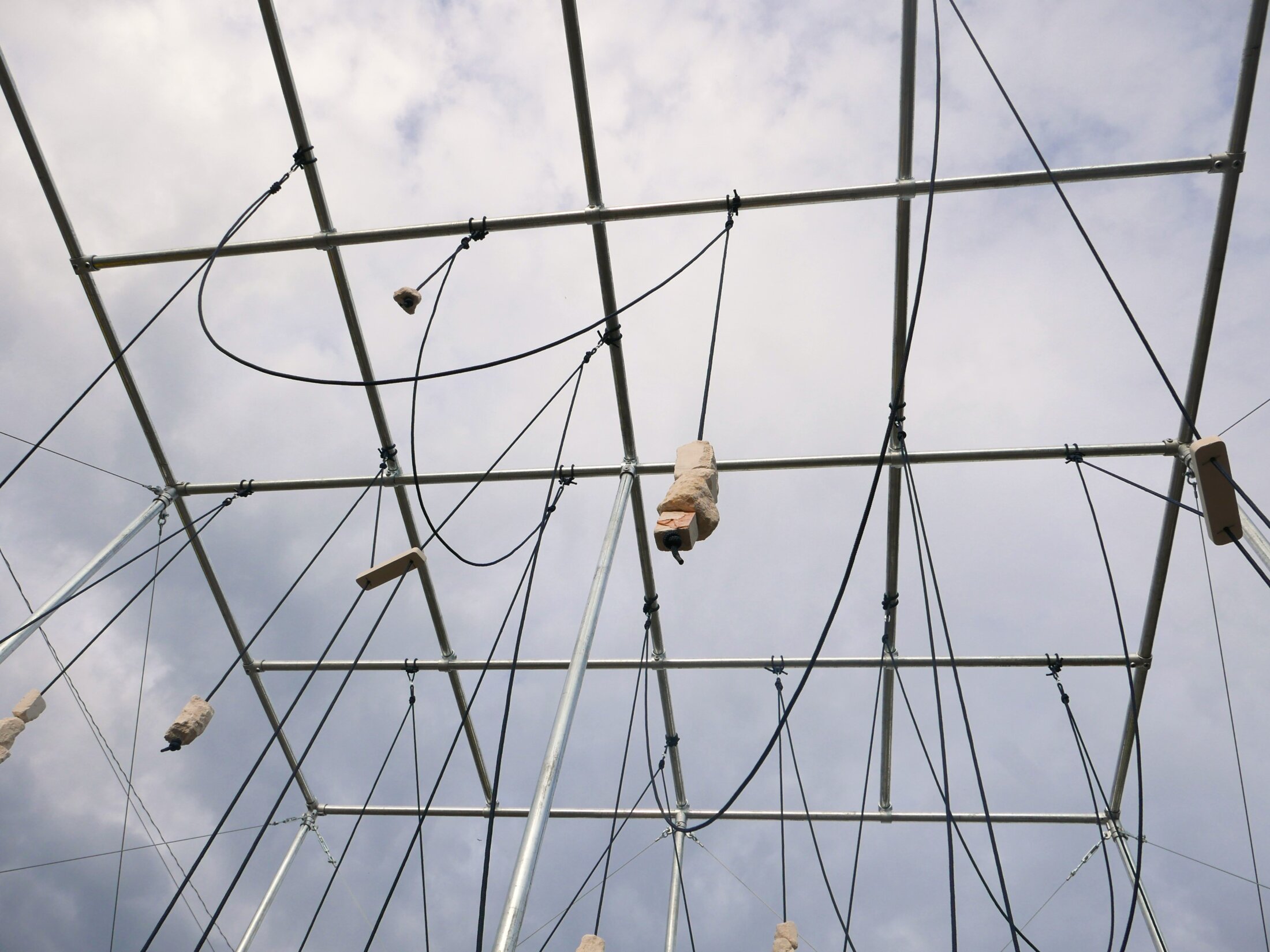 Du côté des pavillons écoles, la « Neuvième école », sorte d’école idéale composée d’un étudiant représentant l’un des huit[5] établissements supérieurs partenaires formant à la scénographie, a bénéficié d’un an et de plusieurs résidences pour imaginer et concevoir le pavillon français sous le patronage de la designeuse Nina Chalot et du metteur en scène Cyril Teste pour qui « c’est un collectif organique plutôt qu’organisé, un véritable corps collectif extrêmement sensible. Les étudiantes sont allées cueillir leurs intuitions à la source. Aujourd’hui, tout le savoir est à notre disposition sur le net, mais savons-nous seulement le cueillir ? Or, pour des scénographes, le medium de cette attention, c’est, à l’évidence l’image et la scénographie des images. Ainsi se sont déployées peu à peu la thématique de l’eau et celle de la pierre ». De cette fiction minérale installée en extérieur naît une fontaine urbaine dont l’eau, plutôt que de s’en tenir à un circuit prédéfini, transpire à travers les pores de la pierre, infuse, ne jaillit jamais. « We do not own the water » explore la rareté des ressources naturelles, ici de l’eau, en même temps qu’une recherche d’hospitalité radicale. Dans ce pavillon cube ouvert de tous les côtés, incarnation métaphorique d’une source perdue, les matières poreuses et transpirantes sont portées à l’attention des visiteurs par la rencontre, l’invitation à déambuler à la découverte d’une eau que l’on ne domestique pas.
