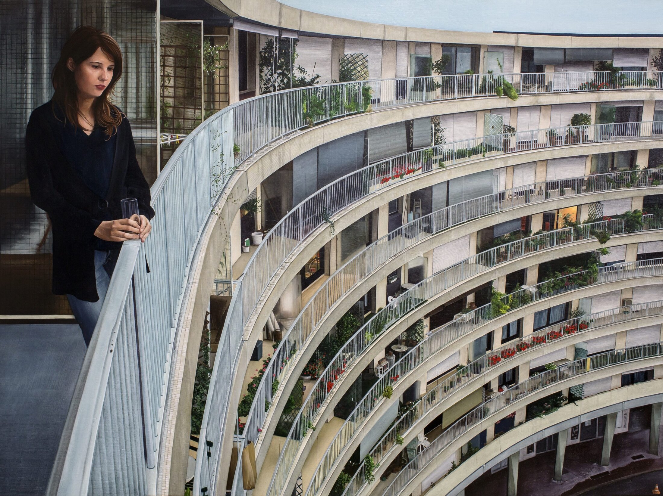 Depuis 2018, à Chelles en Seine-et-Marne, chaque ouverture de saison du centre d’art contemporain Les Églises est rythmée par une exposition monographique qui fait la part belle à la peinture. Cette année ne déroge pas à la règle avec l’invitation faite à Thomas Lévy-Lasne d’investir ce lieu du patrimoine local. Dix ans après sa première exposition personnelle dans un centre d’art, en l’occurrence le centre d’art contemporain Chanot (cacc) à Clamart alors dirigé par Madeleine Mathé, dans laquelle il revenait sur dix ans de création picturale, l’artiste s’offre une seconde rétrospective qui permet cette fois-ci d’embrasser vingt ans d’une production qui s’attache à dépeindre la banalité des invariants humains, puisant son inspiration dans les actions de tous les jours parfois insignifiantes, une peinture figurative du quotidien et de l’intime pour mieux souligner les absurdités et autres travers de notre société à l’aide d’un corpus de toiles emblématiques réalisées entre 2004 et 2024. Cet ensemble permet de suivre l’évolution de l’œuvre de Thomas Lévy-Lasne, de l’avènement de la banalité au constat qu’elle s’échappe des mains du peintre avec la dérive climatique. Celle-ci va inéluctablement entrainer un changement de paradigme dans nos comportements, précipitant ainsi les sujets de ses peintures dans lesquelles il passe du « je » au « nous », le dernier pronom devant être ici compris comme une espèce en voie de disparition. « J’ai beaucoup travaillé sur la question du réchauffement climatique. C’est une question que j’avais en tête depuis très longtemps, notamment parce que je pense que cela a beaucoup à voir avec notre rapport au réel[2] » précise le peintre. De l’obstination de nos certitudes à la précarité du vivant, cette rétrospective révèle ce que nous ne voulons toujours pas voir : un monde qui bascule.« J’ai l’impression désagréable de m’inscrire dans un temps long menacé par l’urgence de notre vulnérabilité » précise-t-il. « La continuité de nos modes de vie dans des conditions satisfaisantes me paraît un défi collectif majeur ».