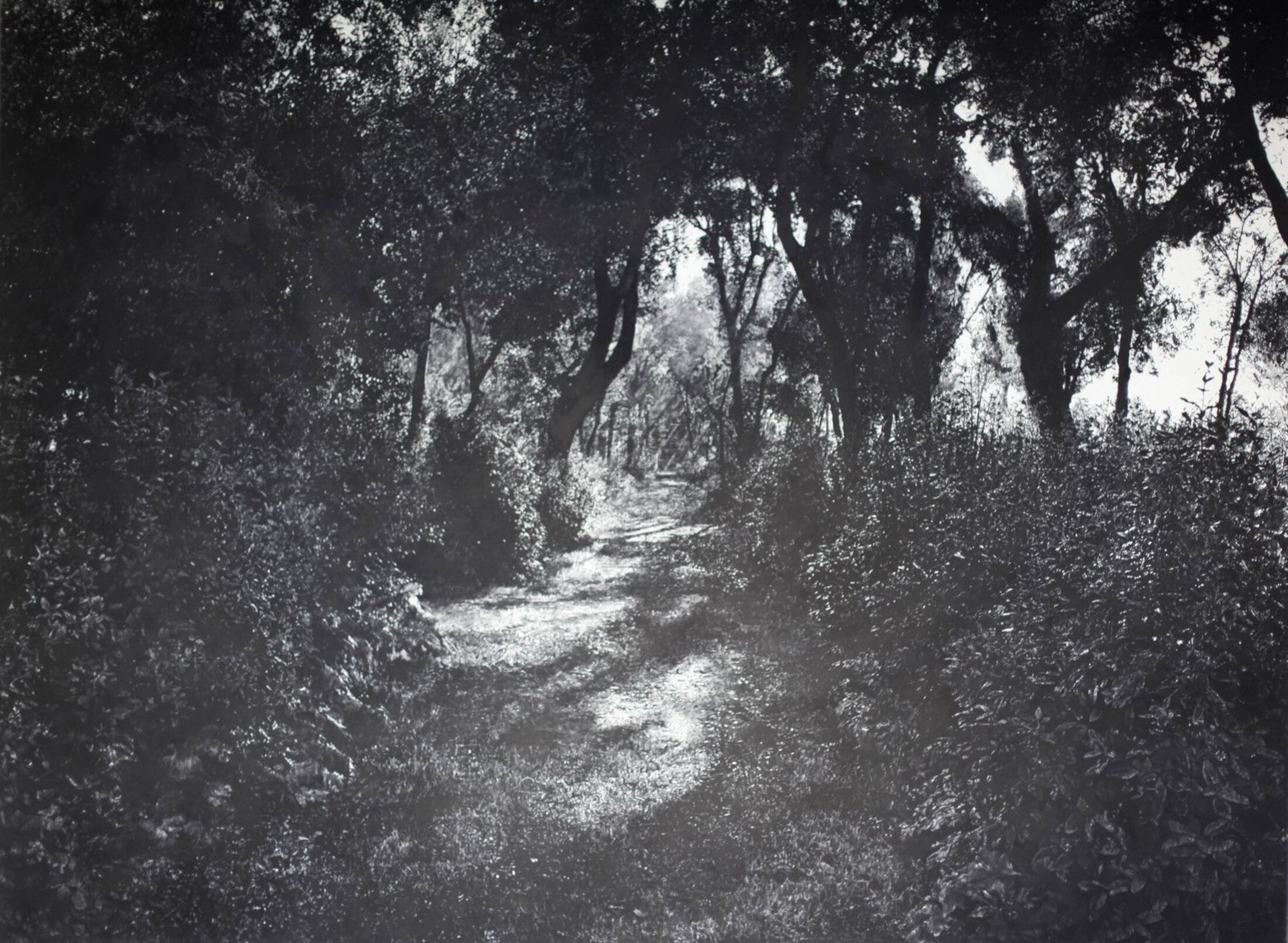 Ce qu’il peint disparait quasiment sous ses yeux comme avec « le Bosco » (2020), dessin immersif de trois mètres sur quatre, exécuté de façon ironique au fusain – qui n’est autre que du bois brûlé. Cette petite forêt de la Villa Médicis, Académie de France à Rome, où il a été pensionnaire en 2018-19, occupant l’atelier d’Ingres, est un endroit fixe, figé depuis 1666. Cependant sa disparition semble désormais rapide, les arbres malades ne résistant pas aux vents nouveaux qui soufflent violemment sur Rome. Avec la dérive climatique, le bois de la Villa est condamné à très court terme. Les peintures de Thomas Lévy-Lasne sont autant de preuves de la mutation des habitudes culturelles des humains dans leur relation avec leur environnement, de l’anthropisation de la planète qui voit la nature sauvage disparaitre au profit d’une modernité passant par l’artificialisation.