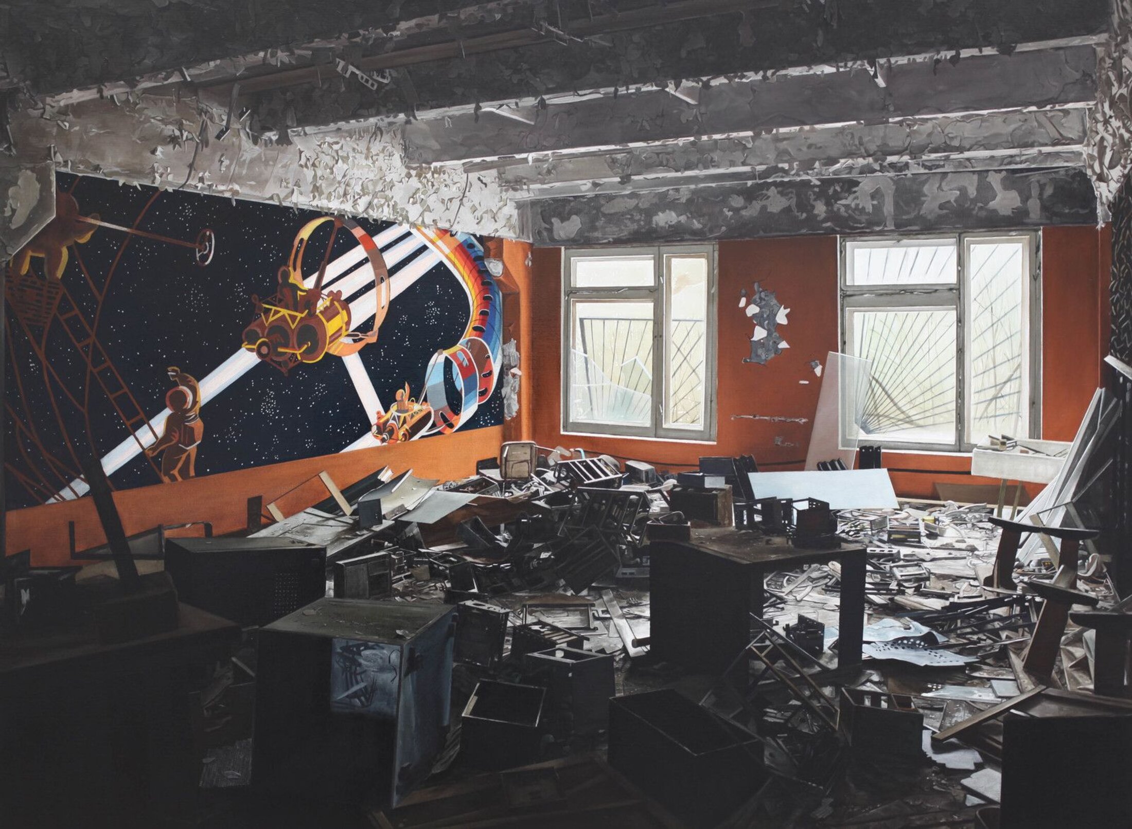 Peintre de la banalité, Thomas Lévy-Lasne a tenté durant des années de répondre à la question : qu’est ce qui se passe quand il ne se passe rien ? Ses peintures permettent de retrouver le goût d’un monde quotidien devenu invisible. En traitant de façon classique les sujets les plus divers et les plus contemporains, il les révèle à nouveau. Son réalisme très personnel s’oppose à un hyperréalisme qui se voudrait uniforme. Mais, depuis quelques temps, la question s’est déplacée : que peindre si ce qu’il peint peut disparaître ? « Il est à l’aise avec la catastrophe, très bon contemporain de l’apocalypse[5] ». L’écrivain Aurélien Bellanger dit de Thomas Levy-Lasne qu’il ne craint pas le conflit, précisant qu’il s’agit là d’une qualité indéniable. « J’ai cherché ce que pouvait être une peinture de paysage contemporain : un paysage tragique. Un paysage qui interroge l’hébétude du spectateur alors que c’est cette passivité qui sera la cause de sa perte par le paysage même » répond Thomas Lévy-Lasne pour qui « la peinture est un lieu en amont des images[6] ». Le peintre continue d’inscrire sans relâche le monde contemporain dans l’histoire de l’art.