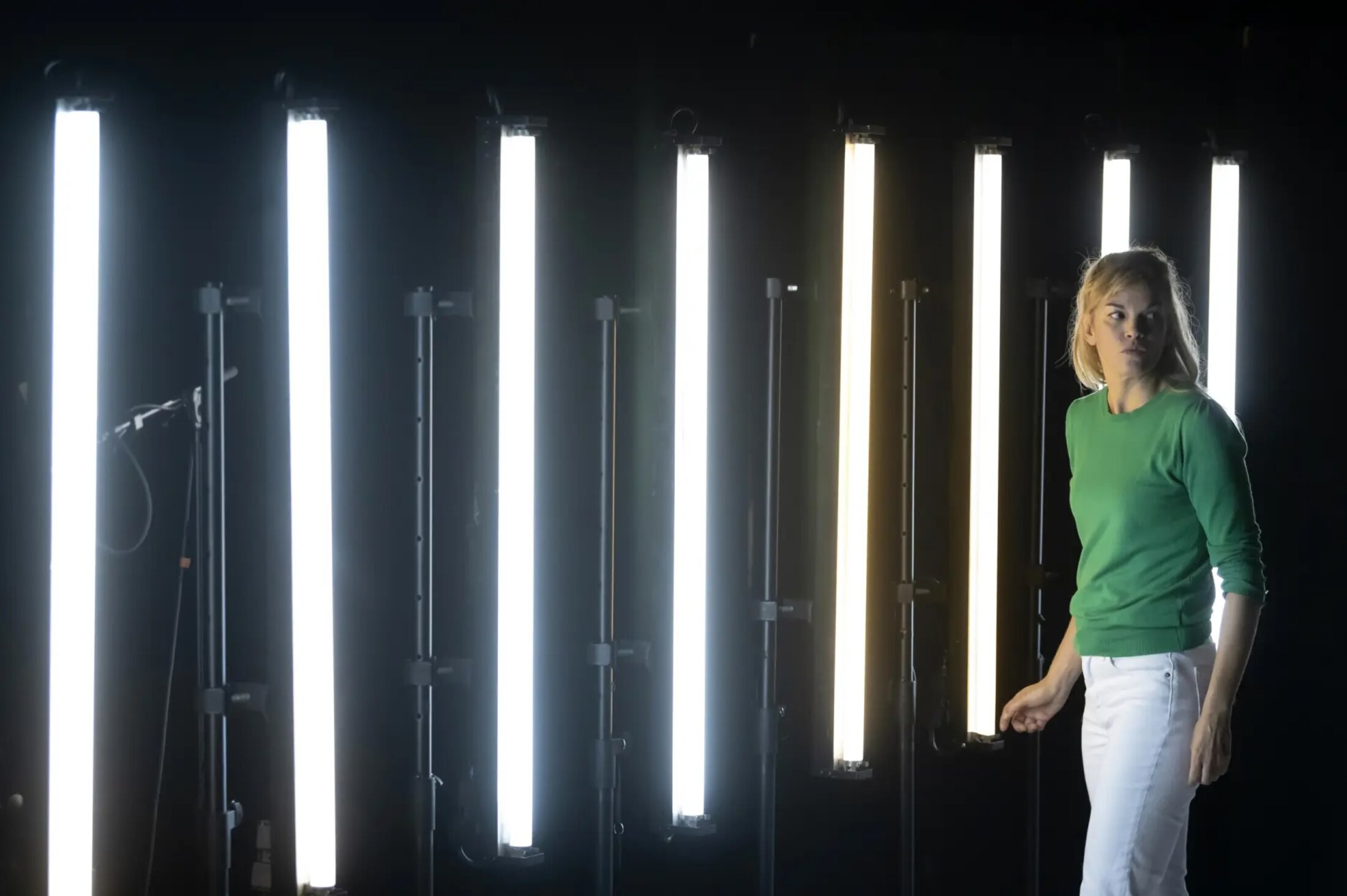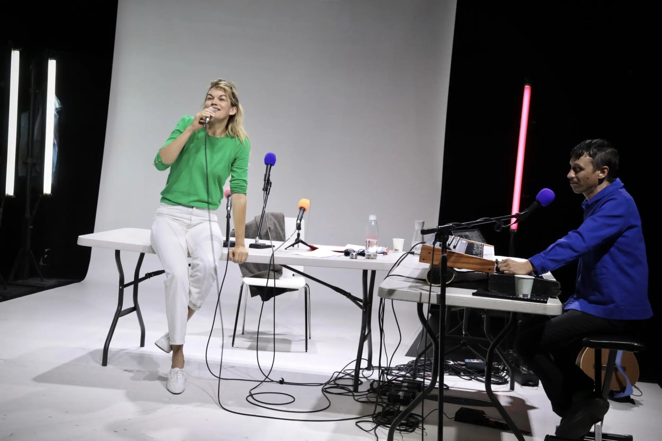 Marie-Sophie Ferdane, actrice caméléon passée par la Comédie-Française et vue chez Arthur Nauzyciel et Pascal Rambert, refuse l’imitation pour embrasser l’appropriation. Elle porte le spectacle sur ses épaules avec une présence souvent bouleversante. « De la longue dame brune, Marie-Sophie Ferdane a l’élégante silhouette mais la ressemblance s’arrête là et c’est bien ce qu’il faut : ne surtout pas chercher à lui ressembler puisque cette chanteuse est incomparable[4] » explique Emmanuel Noblet. « Il n’y aura ni velours ni robe noire, ni plumes ni rond de lumière dans la pénombre, ici l’actrice est blonde dans un espace blanc ». Elle n’est pas Barbara – qui pourrait l’être ? – mais une femme qui vibre à l’unisson de ses peurs, de ses colères, de ses amours voraces. Elle pénètre sur le plateau avec une grâce feutrée, s’empare des micros comme d’une arme amie, et laisse les mots de Barbara émerger : « Je ne suis pas mystérieuse, je suis juste moi ». Le monologue, fluide et polyphonique, tisse interviews des années soixante, dans lesquelles elle raille les journalistes trop pressants, et lettres privées à un amant inconnu, où la passion se mêle à la jalousie acérée. Marie-Sophie Ferdane les fait siens, les infuse de sa propre intensité. Quand elle évoque l’Écluse, ce cabaret minuscule où tout a commencé, sa voix tremble d’une tendresse qui n’est plus seulement citation, mais mémoire vive. Elle parle du métier, des tournées épuisantes, des jeunes gens qui pleurent à ses concerts. Et dans ces aveux, surgit la Barbara iconoclaste, celle qui répond aux questions par d’autres questions, qui défend farouchement sa liberté, qui salue la « fragile et belle jeunesse » tout en la mettant en garde contre les illusions.