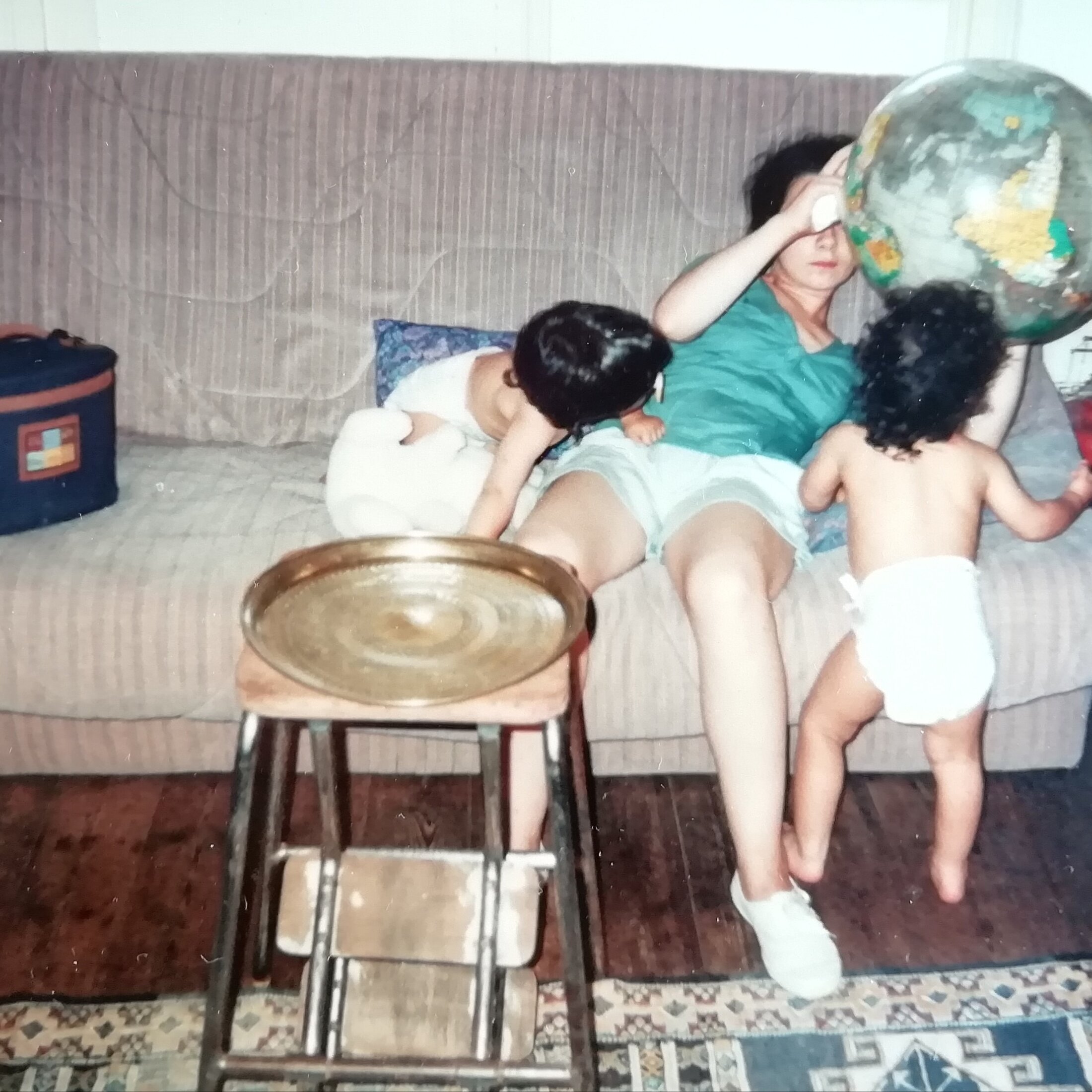 Dans ce projet autobiographique, convoquer, par la parole, le geste ou l’image, les récits d’enfance peuplés de fantômes, ouvre la voie à la réparation. Elles interrogent leur héritage culturel, leur rapport à l’Algérie. La pièce est une traversée d’histoires intimes, des occupations dominicales aux nattes après le bain. Leur mère apparait au détour d’un document vidéo provenant des archives familiales et diffusé sur un drapeau aux couleurs bleu, blanc, rouge, délavées, un drapeau usé, rapiécé avec toutes sortes d’images, qu’elles tiennent à bout de bras. Elle leur raconte de sa voix douce leur père, le comédien Kader Baraka, disparu en juillet 2003, au fur et à mesure qu’elle ouvre des boites contenant objets, carnets et photographies qu’il a laissées, les fragments de vie d’un mari, d’un père. Elle leur raconte aussi le bonheur d’avoir des jumelles, la fierté de les avoir eu en même temps. Parfois, toutes les trois effectuent des rituels sans trop savoir pourquoi, comme tourner autour d’un rond-point en vidant des bouteilles d’eau, ou aller hurler dans les bois. Mais il y a aussi la maitresse écrivant à chaque fois Sophie au lieu de Sarah, et cette nouvelle copine qu’elles s’étaient faites au parc et qu’elles ne reverront jamais, sa mère étant venue la chercher en la sermonnant, lui rappelant qu’il ne faut pas jouer avec des arabes.