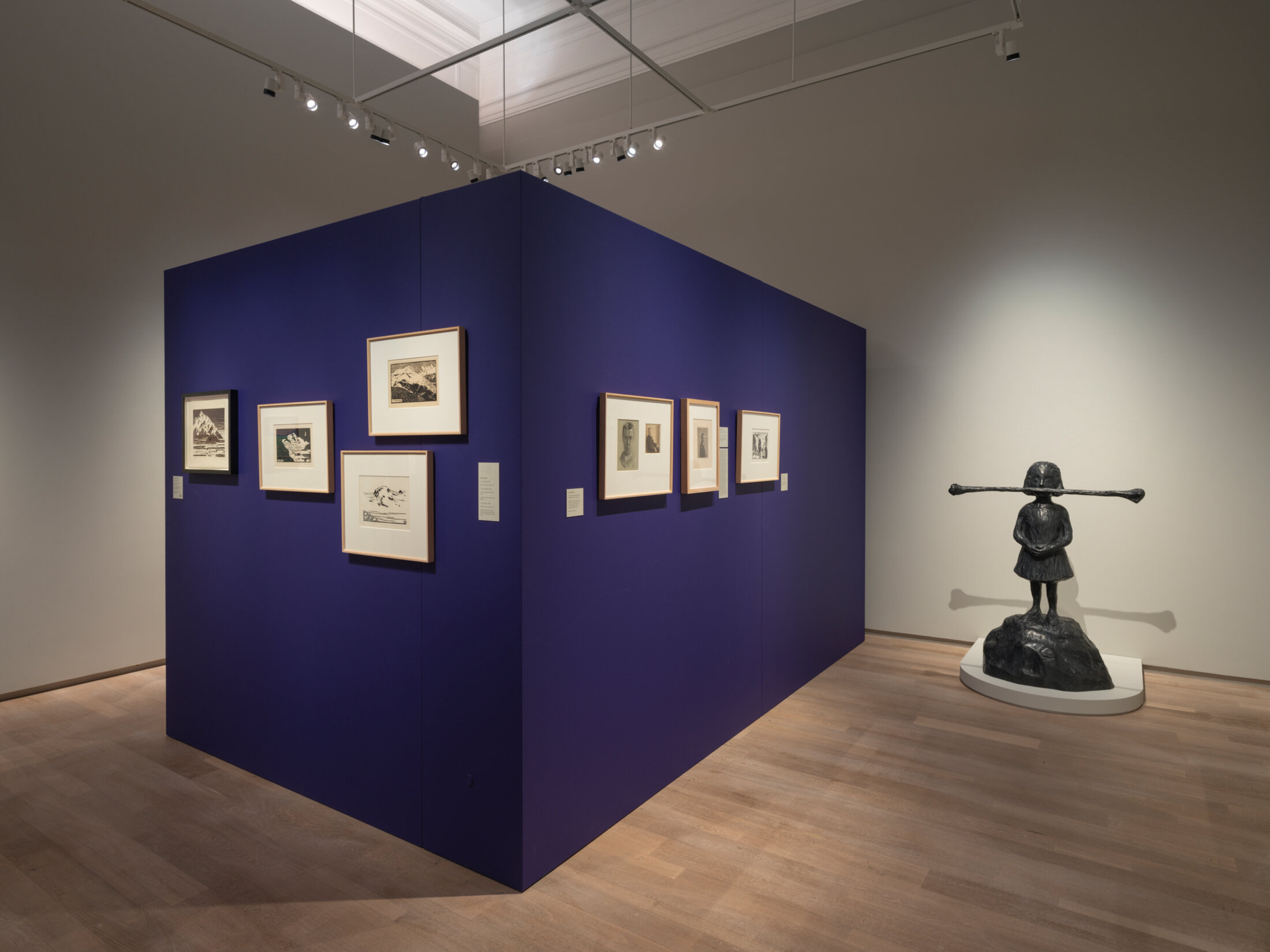 À l’étage, une seconde sculpture de l’artiste est présentée au sein de l’exposition « Felix Vallotton. Un hommage », qui marque le coup d’envoi des célébrations du centenaire de la mort de l’artiste suisse. « L’Ogresse » (2021) introduit une énergie vitale, presque subversive. Elle montre une fillette, elle aussi en bronze, mordant avec avidité un os gigantesque, disproportionné par rapport à sa petite taille. La posture, dynamique et presque provocante, tranche avec la mélancolie de « Dans mes mains ». L’acte de mordre, primal et instinctif, évoque une pulsion de vie, une affirmation de soi face à un monde qui pourrait l’engloutir.« L’Ogresse » joue avec les stéréotypes. Loin de la figure monstrueuse, la fillette devient une héroïne espiègle, défiant les attentes de douceur ou de fragilité associées à l’enfance et à la féminité. L’œuvre peut être lue comme une célébration de la puissance féminine, mais aussi comme une réflexion sur la voracité de l’enfance – une période où l’on dévore le monde pour se construire. Le contraste entre la délicatesse du modelé – les traits fins du visage, les plis du vêtement –, et l’acte brut de mordre crée une tension féconde. Le bronze, ici plus texturé, semble vibrer d’une énergie contenue, comme si la fillette était sur le point de bondir. Ce balancement entre gravité et légèreté est au cœur de l’œuvre de Françoise Pétrovitch. Les deux sculptures incarnent la dialectique entre perte et affirmation, silence et cri. À travers ces figures féminines, l’adresse explore l’absence non comme un manque, mais comme une force génératrice, un espace où se tissent les récits de l’intime et du collectif.