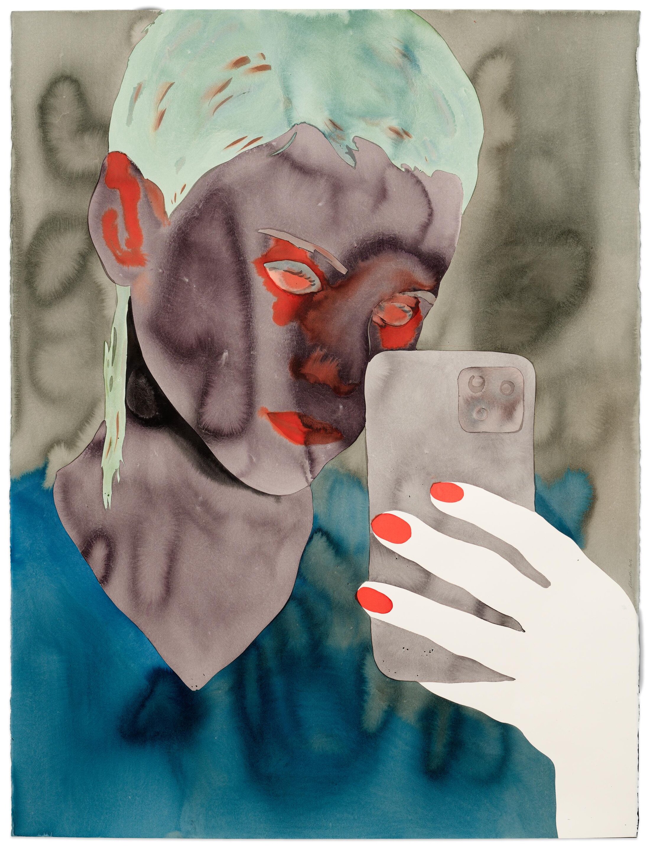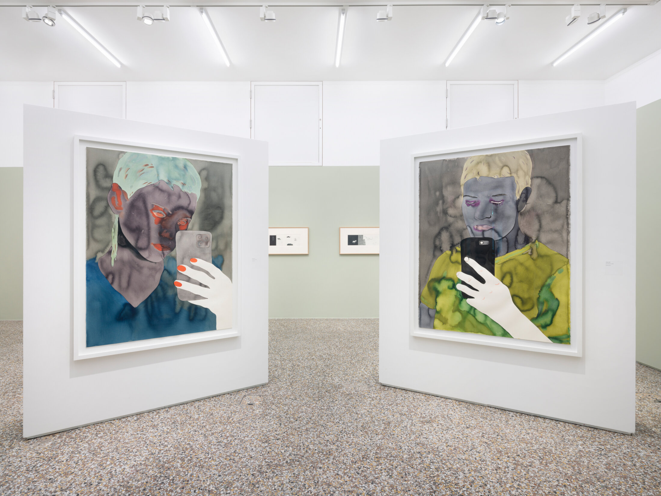 Artiste majeure de l’art contemporain en France, Françoise Pétrovitch (née en 1964 à Chambéry, vit et travaille à Cachan) s’est imposée avec de grands lavis dans lesquels elle explore les thèmes qui lui sont chers, à savoir, l’intimité, l’adolescence ou encore la disparition. « Un grand format peut être plus intime encore qu’un petit dessin » explique-t-elle. Dédié aux arts graphiques, le musée Jenisch à Vevey, sur la rive nord du lac Léman, présente un ensemble de dessins, gravures et vidéos de l’artiste, dans une exposition intitulée « De l’absence », sa seconde exposition personnelle en Suisse après qu’elle eut investi le Château de Gruyères à l’été 2021[1]. D’emblée, l’exposition frappe par son économie de moyens et sa densité émotionnelle. Les grands lavis d’encre colorés dominent l’espace avec une fluidité qui évoque autant la caresse que la menace. Ils sont autant de portraits aux regards vides, quasi fantomatiques. « Ne pas représenter le regard de la figure permet de voir l’ensemble[2] » précise l’artiste. Dans « Selfie » (2022), un visage masqué par un téléphone portable incarne une absence paradoxale, celle de l’individu absorbé par son propre reflet numérique. Françoise Pétrovitch ne juge pas, elle observe. Son trait précis n’est jamais froid. Il capte cette jeunesse contemporaine, à la fois hyperconnectée et étrangement isolée, comme figée dans un entre-deux existentiel. L’artiste fait du figuratif un miroir de l’abstraction sociale, où l’absence devient une texture palpable, un vide qui structure le regard.