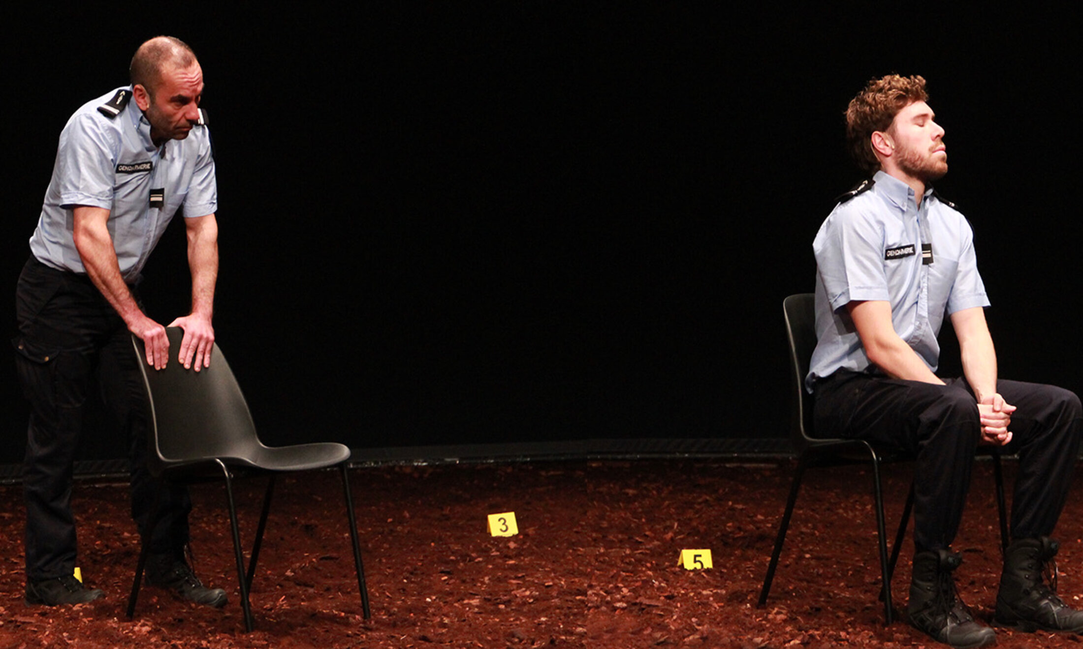 Sur scène, la minute fatidique qui suit la mort de Rémi Fraisse est une minute de vide, de respiration retenue, comme suspendue dans le temps. Puis les faits se déploient, heure par heure, reconstitués avec la minutie d’un storyboard de film noir. « Il n’y a aucune phrase inventée ou qui commente ce qu’il s’est passé[4] » précise Olivier Coulon-Jablonka. Avec Sima Khatami, ils empruntent au cinéma leur syntaxe implacable faite à la manière de plans-séquence d’interrogatoires, de zooms sur des expertises balistiques, de fondus au noir entre témoignages contradictoires. L’ombre de Rémi Fraisse, jamais nommée mais omniprésente, plane sur la pièce tel un fantôme qui hante chacune des répliques. Dans ce théâtre d’archive, de silence, de non‑dit, l’absence devient matière. Elle interroge la vérité d’un procès qui n’a pas eu lieu, et la mémoire qu’il faut, pour beaucoup, reconstruire. Les corps des comédiens-protagonistes tracent une cartographie de la violence. La forêt du Testet devient un labyrinthe de projecteurs et de sons étouffés. Ce qui frappe, au-delà de la rigueur documentaire, fruit de trois ans d’immersion dans les prétoires, de nuits à décortiquer les procès-verbaux, c’est l’urgence poétique du geste. « Non-lieu » n’accuse pas. Il dissèque. Il montre comment un « procès manquant » révèle les failles d’un système dans lequel la hiérarchie militaire se drape dans l’irresponsabilité, et les lanceurs d’alerte écologistes sont relégués au rang de « trublions », forcément suspects, presque coupables. On imagine ces audiences fantômes que les auteurs ont fréquentées pendant le confinement de 2020, quand les théâtres étaient fermés au public mais que les tribunaux tournaient à plein régime, ce qui en dit long sur l’absurdité de nos priorités collectives. Et voilà que le théâtre donne à voir ce que la loi occulte, confronte les versions dans un débat démocratique que la Cour européenne, en condamnant la France en 2025 pour « violation du droit à la vie[5] », n’a su que tardivement entériner. Pourtant, au cœur de cette mécanique implacable, une faille, délicate et humaine : l'émotion brute qui affleure en silences ébréchés, en regards qui se fuient. « Non-lieu » transcende le documentaire pour toucher au tragique. Il nous renvoie à nos propres silences, ceux complices face aux injustices écologiques, à nos propres renoncements face à un État qui préfère un barrage à une vie. Si le spectacle est poignant, il n’offre pas de catharsis facile.