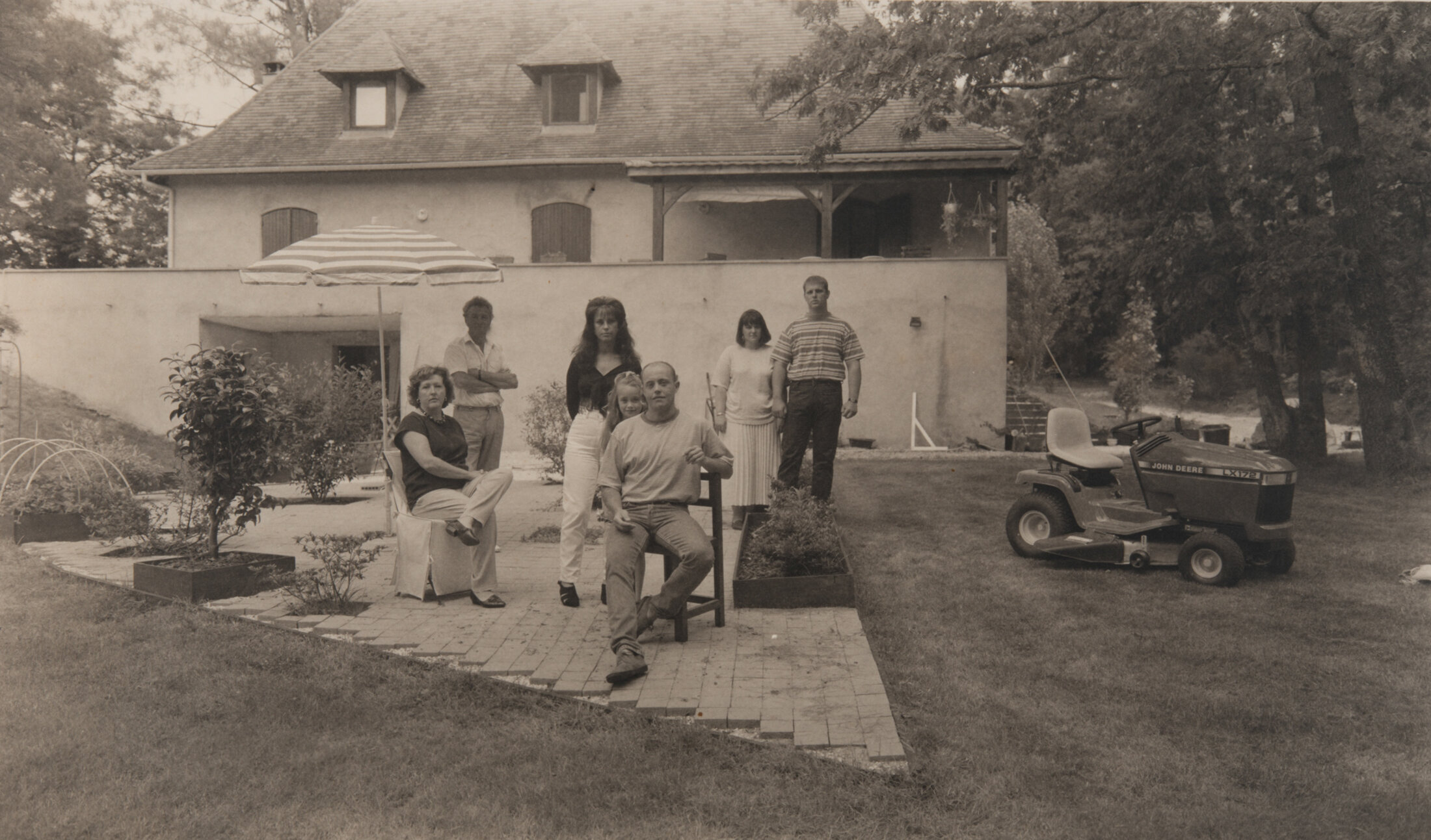 Le couple quitte définitivement les Etats-Unis en 1991. Leur décision fait suite à l’élection de George Bush Senior à la Maison Blanche en 1989 dont ils sont en désaccord avec la politique. Durant un an et demi, ils organisent leur départ, décident de s’installer à Paris, puis trouvent finalement une maison à proximité de la petite ville de Montpon-Ménestérol, en Dordogne, vendent une partie de leur collection de photographies qui leur permettra de vivre quelque temps. A son arrivée en France, Jan Groover aménage son dernier atelier de prises de vue, utilise une chambre photographique de banquet achetée à New York avant son départ. L’appareil, qui doit son nom à sa fonction, est utilisé au début du XXème siècle lors de grandes réceptions afin de photographier des groupes grâce à sa fonction panoramique. Chacun apparaît net, identifiable. Eloignée de New York, contrainte d’abandonner son poste d’enseignement, elle se consacre presque exclusivement au procédé au platine palladium, réalisant avec son nouveau matériel des natures mortes, des paysages, des portraits, mettant en scène des objets du quotidien dans de petits théâtres qui lui servent d’expérimentation d’échelles pour mieux brouiller la référence au réel. Bénéficiant d’un accès immédiat à la nature, elle aménage son « Desert studio », son espace extérieur. Elle revient à la couleur par le biais du numérique à la fin de sa vie lorsque, malade, elle ne peut plus manipuler le lourd appareil.