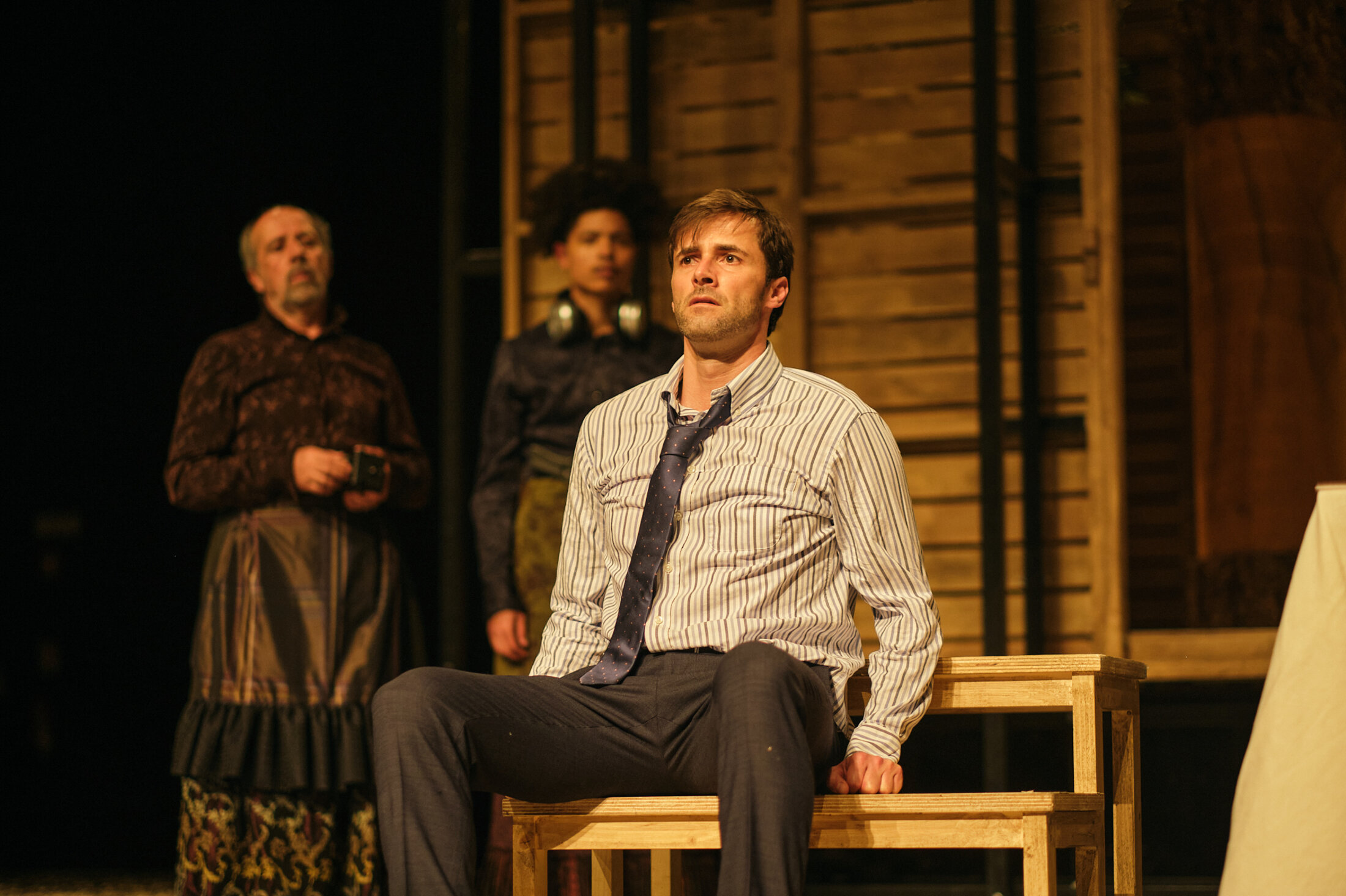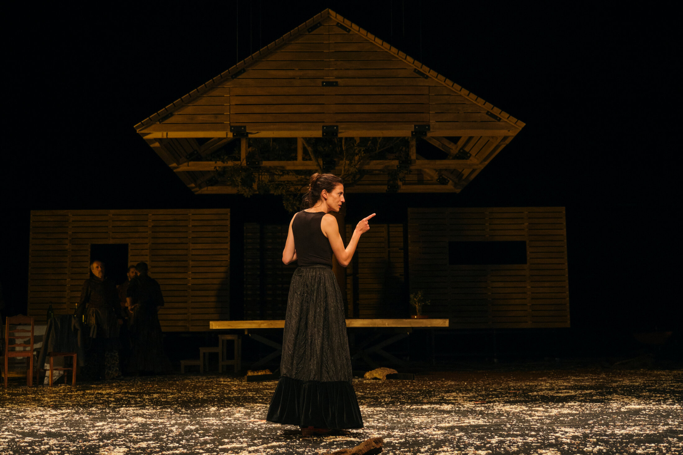 C’est un casting entièrement portugais que Tiago Rodrigues a choisi pour raconter ce conte cruel, étrange, déroutant. Catarina est incapable de tuer Antunes. Prise dans un étau d’injonctions contradictoires, elle doit faire face à ce dilemme. Ce refus de tuer marque l’échec d’un exercice qui s’était imposé en quelques décennies comme le rituel familial de passage à l’âge adulte. Ce déraillement donne naissance à un conflit en son sein même. De la confusion qu’il engendre se font jour des interrogations, à commencer par une réflexion sur la définition même du fascisme. Tiago Rodrigues prend pour point de départ une situation existante, un fait historique : l’assassinat en 1954 de Catarina Eufémia, originaire de Baleizão, village du sud du Portugal non loin duquel il situe l’action de la pièce. À partir de cette situation, il développe une fiction contemporaine qui questionne la notion de démocratie. La courte anticipation temporelle (2028) lui permet de se détacher de la réalité pour mieux la prévenir et ainsi dépasser l’actuelle montée des fascismes en Europe pour se projeter dans l’hypothèse de leur installation au pouvoir dans de nombreux pays, ce qui est déjà le cas en Suède et en Italie, deux nations qui ont récemment élu des dirigeants d’extrême-droite à leur tête. Pour le philosophe Bruce Bégout, le fascisme contemporain, contrairement à celui du siècle précédent, déborde des cadres partisans pour émaner des masses elles-mêmes, apparaissant comme l’expression démocratique[6], une majorité de votants aspirant à plus d’ordre, de contrôle et de rejet. En assassinant des fascistes, la famille accepte le pouvoir de la violence et du crime pour défendre l’idée-même de démocratie. « N’hésitez jamais à faire le mal pour pratiquer le bien » dit à un moment Isabel. « Notre famille tue des fascistes depuis soixante-quatorze ans et ça non plus, ça n’a pas empêché les fascistes de remporter les élections » lui rétorque Sara. Si les deux femmes veulent la même chose – l’éradication du fascisme – les moyens pour y parvenir divergent, s’opposent même. Pour Sara, il faut dialoguer avec ceux qui votent pour l’extrême-droite, « faire de la politique ». On peut voir dans le refus catégorique de Beatriz de manger de la viande à la scène 2, une préfiguration du renoncement à tuer de Catarina.