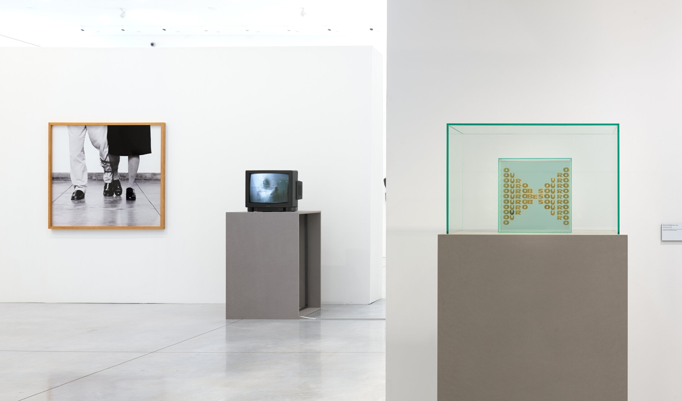 L’exposition se poursuit dans la galerie blanche au premier étage qui s’ouvre sur l’espace de l’écriture comme espace d’affirmation illustré par des œuvres d’Isabel Carvalho et Joana Rosa, tandis qu’Helena Almeida et Ana Vieira incarnent deux approches différentes de la fusion de l’artiste et de l’œuvre. Elles revendiquent toutes les deux le statut d’autrices mais également de modèles. Si leur corps est l’élément central de leur œuvre, c’est un corps universel, neutre, diamétralement opposé au concept d’autoportrait. Dans le cas d’Helena Almeida, il s’agit d’« un corps-idée qui place son corpus photographique sous l'égide du photoconceptualisme[8] ». Ana Vieira explore quant à elle la dichotomie présence/ absence en découpant les formes de vide dans lesquelles l’identité se questionne pour mieux s’affirmer.