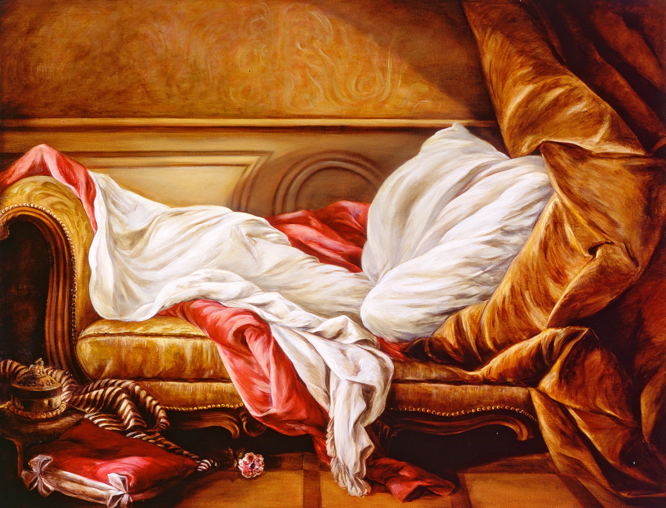 Presque cent ans séparent l’art d’Aurélia de Souza de celui de Rosa Carvalho (née en 1952 à Lisbonne où elle vit et travaille). La première incarne le moment historique de la prise de conscience de l’affirmation de l’autrice par une autoreprésentation quasi obsessionnelle et un regard fermement tourné vers l’extérieur assumant pleinement le glissement de la place des femmes dans l’art, de la muse à l’artiste. La seconde gomme littéralement le corps féminin des grands tableaux classiques telle la « Danaé » (1636-47) de Rembrandt ou « l’odalisque blonde » (1751) de François Boucher, effaçant le sentiment de désir masculin et de voyeurisme à l’œuvre dans les originaux. Le dialogue qui s’instaure entre les deux artistes à travers ce jeu de présence/ absence, d’affirmation et d’effacement, énonce d’emblée la problématique de la place des femmes dans l’histoire de l’art. Pour son autoportrait en Saint-Antoine, Aurélia de Souza questionne l’identité de genre en se mettant en scène et se photographiant travestie en homme dans une pratique inédite et étonnamment précoce pour le Portugal, l’œuvre étant exécutée en 1902. À côté, un petit tableau de Maria Helena Vieira da Silva, daté de 1936-37, semble contenir à lui seul l’essence même de l’exposition. « Moi, réfléchissant sur la peinture » opère la synthèse d’une attitude commune à la plupart des artistes exposées ici : « l’intériorisation d’un désir d’affirmation, impérieux et obsessionnel, au moyen de l’entreprise artistique[6] ».