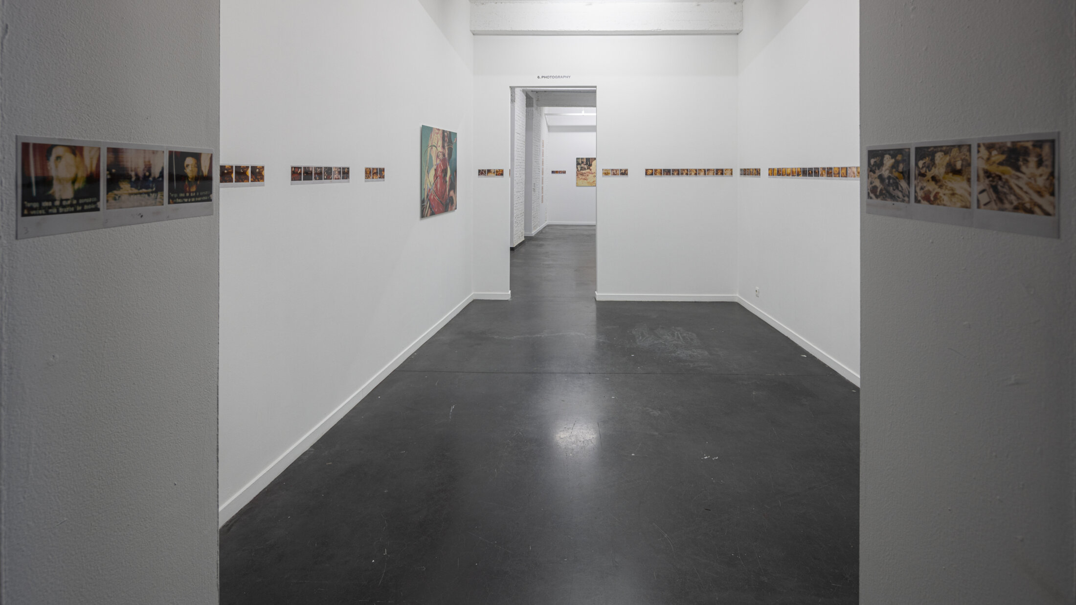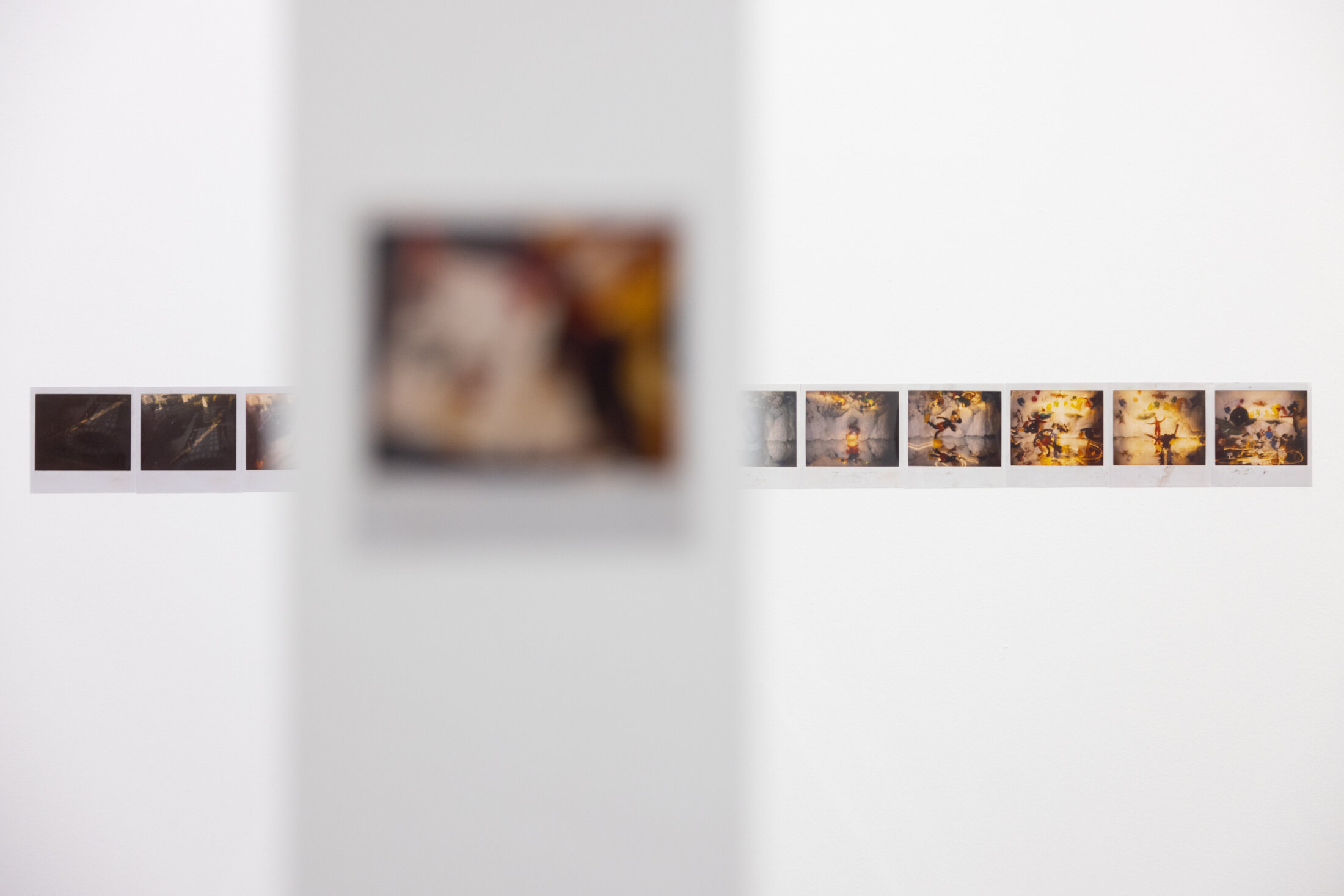 Les Polaroïds occupent une place centrale dans l’accrochage. Il s’agit d’un corpus très abondant que Zulueta a réalisé de manière quasi compulsive[4] au début des années quatre-vingt-dix. Les possibilités du Polaroid lui permettent alors de capturer et d’intervenir directement et immédiatement sur l’image représentée. La création de plusieurs milliers d’images élaborées dans le même format et avec la même exécution est le résultat de ce regard nerveux vers l’image tendue. Dans ces images, la formule « mientras tanto… » (« pendant ce temps… ») apparaît de manière récurrente et fait référence à la condition parallèle des œuvres présentées, reflétant l'intérêt de Zulueta pour la construction de discours simultanés et pour une façon de raconter propre au cinéma ou à la bande dessinée, à laquelle s'ajoute sa passion pour les autocollants, dans des récits sans fil conducteur évident. Il utilisait en effet les Polaroïds comme de courtes vignettes narratives, presque à la manière des cases de bande dessinée ou des « images arrêtées » destinées à construire des histoires fragmentaires. L'accrochage cherche à respecter cette intention et présente les Polaroïds en séries plutôt qu'en pièces isolées, chaque série rassemblant de récits décousus et pleins de digressions, où la narration est subordonnée au résultat formel, comme dans la plupart de ses œuvres en Super 8 des années soixante-dix. Concrètement, le parti pris curatorial met l’accent sur la répétition et l'obsession. La vue d’ensemble renforce l’idée d’une pratique accumulatrice et d'un récit morcelé.