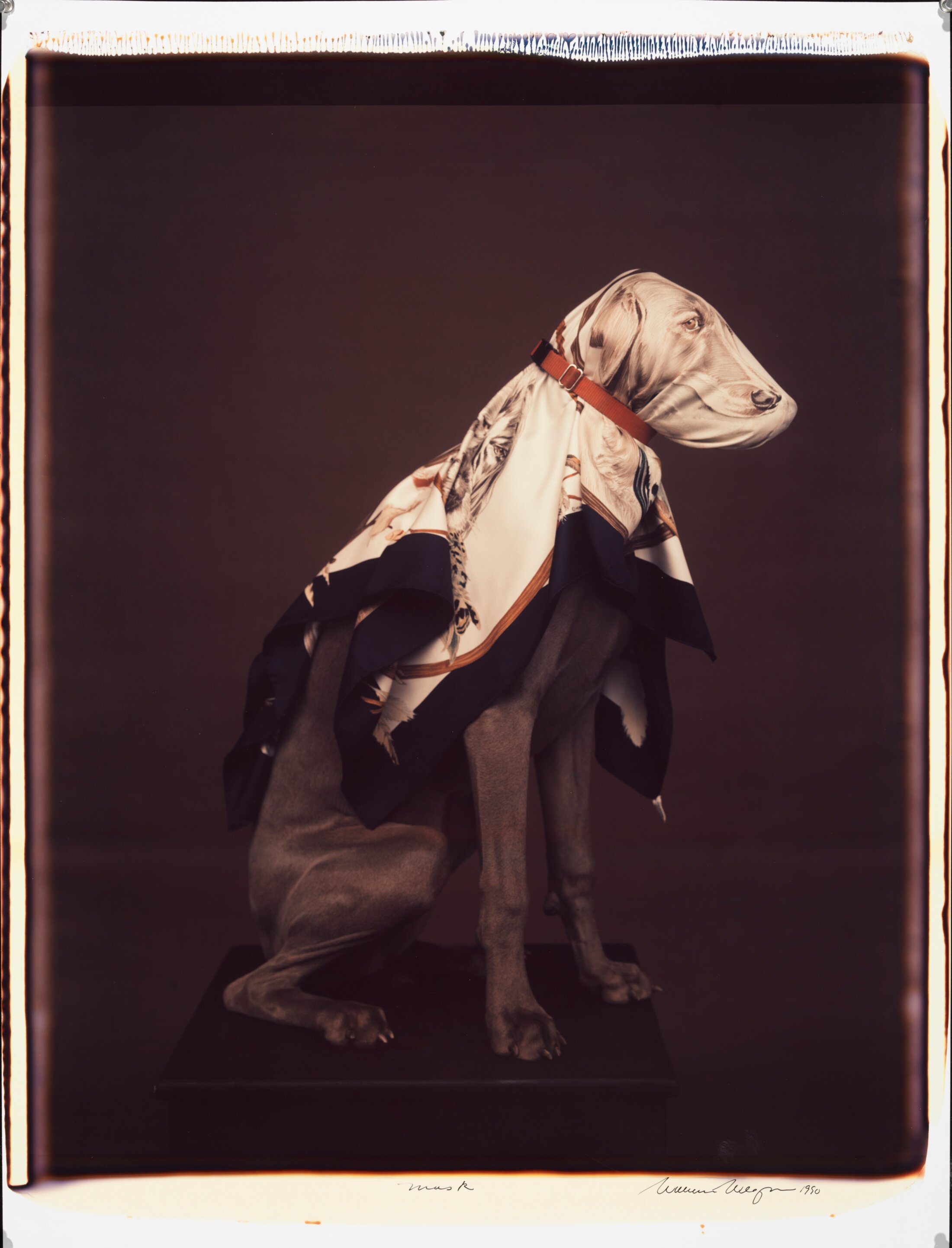 Les images parodient notamment les nombreux types de photographies de magazines, des publicités pour la nourriture pour chiens aux images de haute couture. Dans son introduction à l’ouvrage « Man’s best friend[5] » – que Wegman dédie à Man Ray mort quelques semaines plus tôt –, Laurence Wieder raconte l’irruption fortuite du braque de Weimar dans le travail de William Wegman. Lorsqu’on refusait qu’il prenne place devant l’appareil photographique, il boudait, gémissait. Les photographies couleur que l’on retrouve dans le livre ont été réalisées entre 1979 et 1982, à l’aide d’un appareil photographique Polaroid grand format, principalement au studio Polaroid à Cambridge dans le Massachusetts. L’impression Polaroid grand format devient alors son moyen d’expression favori, l’instantanéité favorisant la spontanéité. Si elles marquent la phase ultime du partenariat avec Man Ray, les images Polaroid se poursuivront avec ses successeurs, à commencer par Fay Ray.